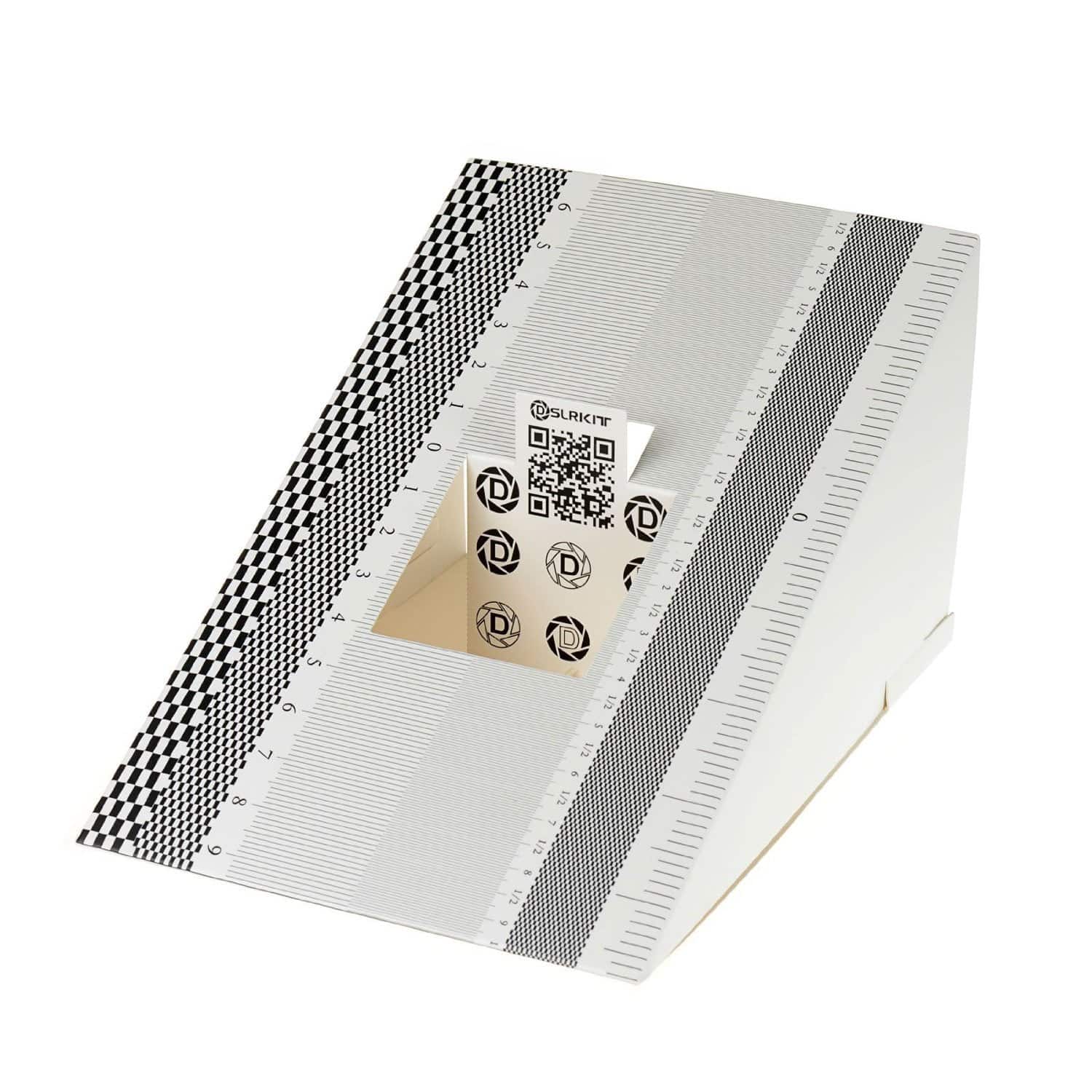 This compact ruler allows you to determine if your lens is auto-focusing accurately as it should. It is an essential tool that is particularly useful when shooting with a shallow depth of field, where focusing should ideally be “spot on”. You can use this ruler to determine how “off” the focusing is for a particular camera / lens combination and, on supported cameras, adjust the camera’s auto-focus settings to resolve this.