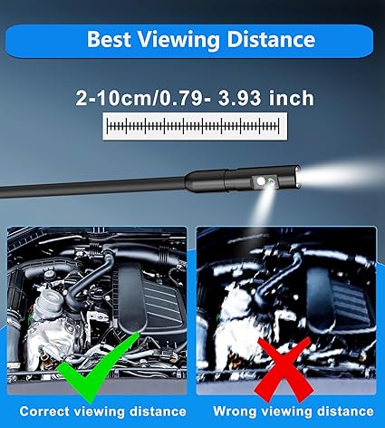 • IP67 Waterproof Dual Lens: This endoscope comes with 2 cameras, one side camera and one front camera, and it can be switched at any time. 1920×1080 resolution for visual detail, 8.0mm diameter camera, special technology with a focal length of 2cm – 10cm. Endoscope is rated IP67 waterproof for use in inclement weather and wet environments.