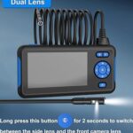 Dual Lens Industrial Endoscope, 1080P Digital Borescope Inspection Camera, 8.0mm IP67 Waterproof, with 4.3″ LCD Screen Display, 8 LED Lights,16.5FT Semi-Rigid Cable Blue