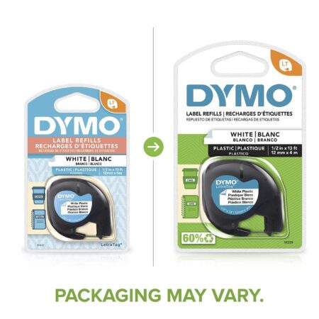 Developed specifically for its popular LetraTag label makers, DYMO’s white plastic tape cartridge offers 13 feet of .5-inch printable pearl white plastic tape. For attractive labels that stand the test of time, use a genuine DYMO quality accessory.