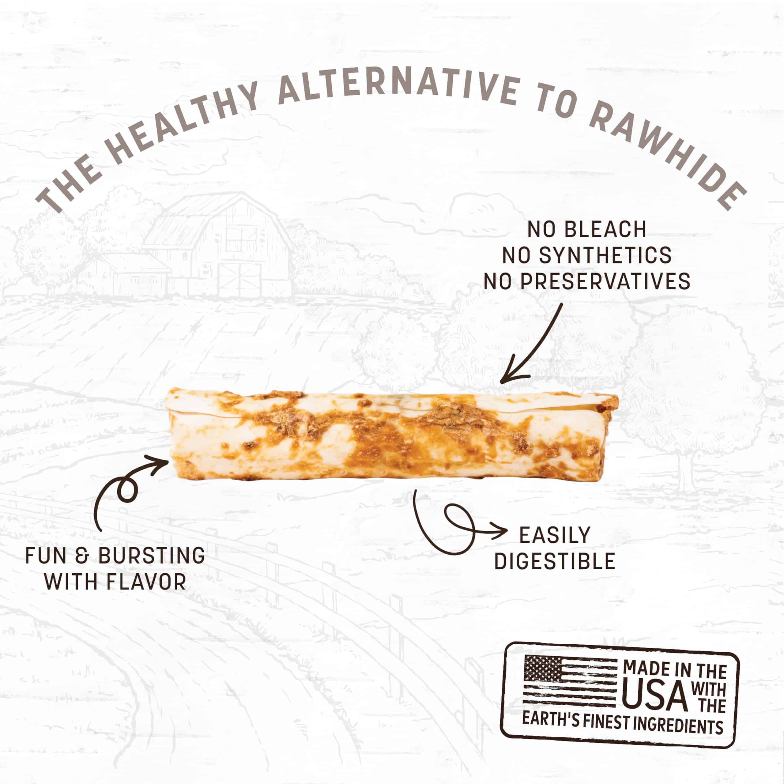 - HEALTHY & HAPPY: These yummy alternative rawhides for dogs are free of bleaches, synthetics, & preservatives. Our rawhide free chews are consciously made in the USA with 7 pure ingredients.