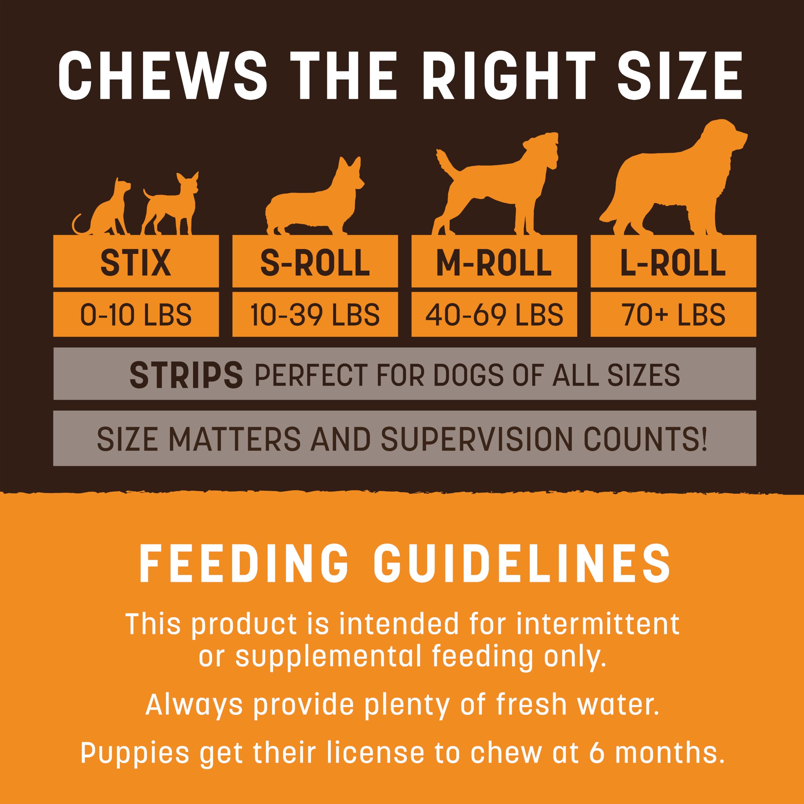 - CHEWS FOR MEDIUM DOGS: Just the right size for a 46 to 75 lbs dog. These rawhide free dog treats are made with humanely raised, American chicken that delivers a chewable bliss!