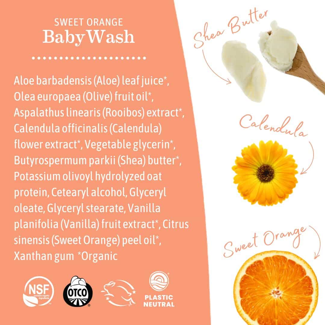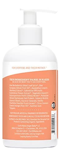 - NON-IRRITATING & CLINICALLY TESTED: Earth Mama?s Sweet Orange Baby Lotion is NSF/ANSI 305 Certified by Oregon Tilth, Leaping Bunny Certified and Plastic Neutral.