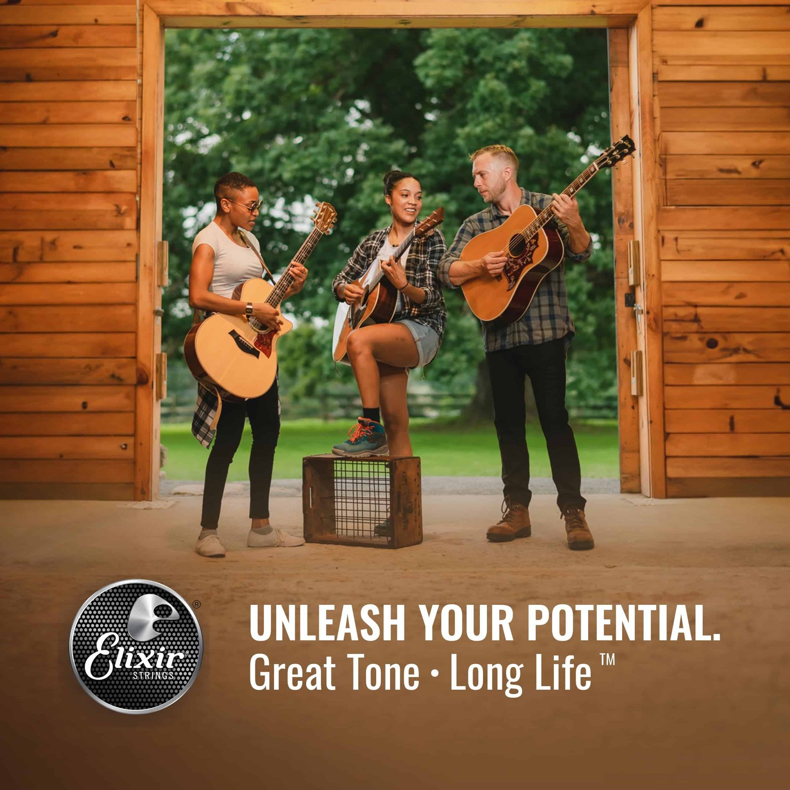Strum confidently with the same premium acoustic guitar strings that experienced players worldwide trust to keep their incredible tone longer than any other string available. Unlike other string brands, Elixir Strings coats the whole string. This protects not only the outer string surface but also the gaps between the windings where common tone-deadening gunk typically builds up in other brands? coated and uncoated guitar strings. Anti-Rust Plating on plain steel strings ensures longer tone life for the entire set. Who wouldn?t love more quality playing time between the hassle and cost of string changes? Engineered to endure, these acoustic strings constructed with phosphor bronze wrap wire boast a dynamic balance of rich, full-bodied tone and sparkling high-end clarity. Compared to our original POLYWEB Coating, the ultra-thin NANOWEB Coating allows a more traditionally textured, ?uncoated? feel. For a slicker, gentler feel, try a set of strings with our original POLYWEB Coating. The 80/20 Bronze Acoustic Guitar Strings with POLYWEB Coating, for example, might be a good fit if you want a more robust and rounded tone. On the other end of the tone spectrum, our 80/20 Bronze Acoustic Guitar Strings with NANOWEB Coating deliver a brighter, crisper tone alongside the same traditional feel as these phosphor bronze strings. Of course, the kind of string you play is all a matter of personal preference. Not sure what tone or feel is right for you? Try them out for yourself, and find your new favorite string from Elixir Strings. For a more in-depth look at what makes our strings so special, scroll to the branded info further down the page. Elixir Strings: Great tone. Long life.