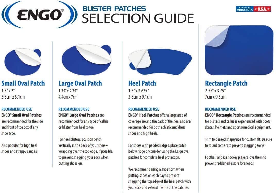 • COMFORTABLE AND LONG-LASTING! Unlike traditional blister bandages, ENGO patches apply directly to your shoe, not to your skin. They are ultra-thin, 0.015 inches thick, so shoe fit is unchanged. That means they last longer (up to 300 miles) and they won?t irritate your skin. ENGO patches are water-resistant.