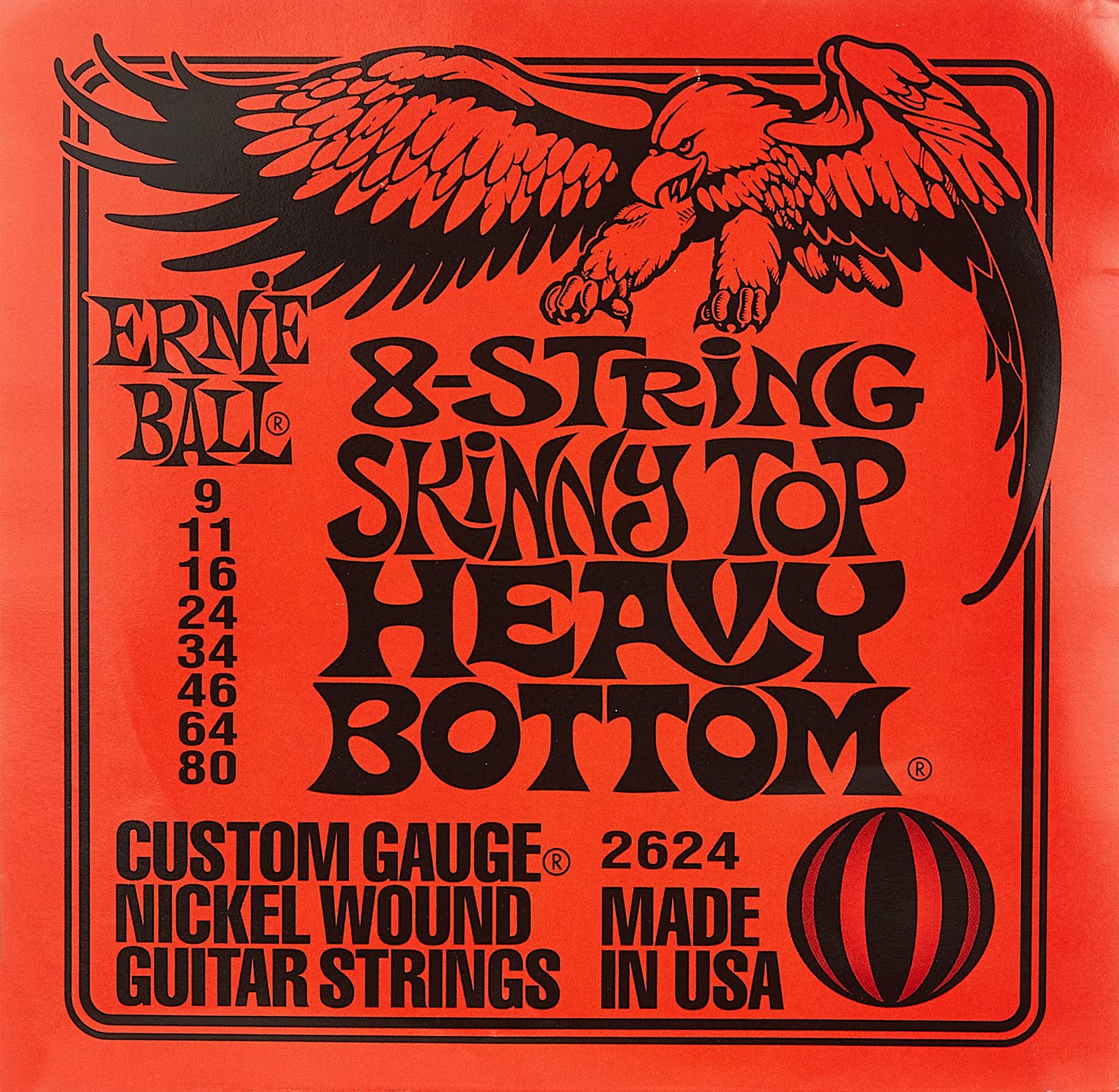- 8-string gauges: .009, .011, .016, .024, .034, .046, .064, .080