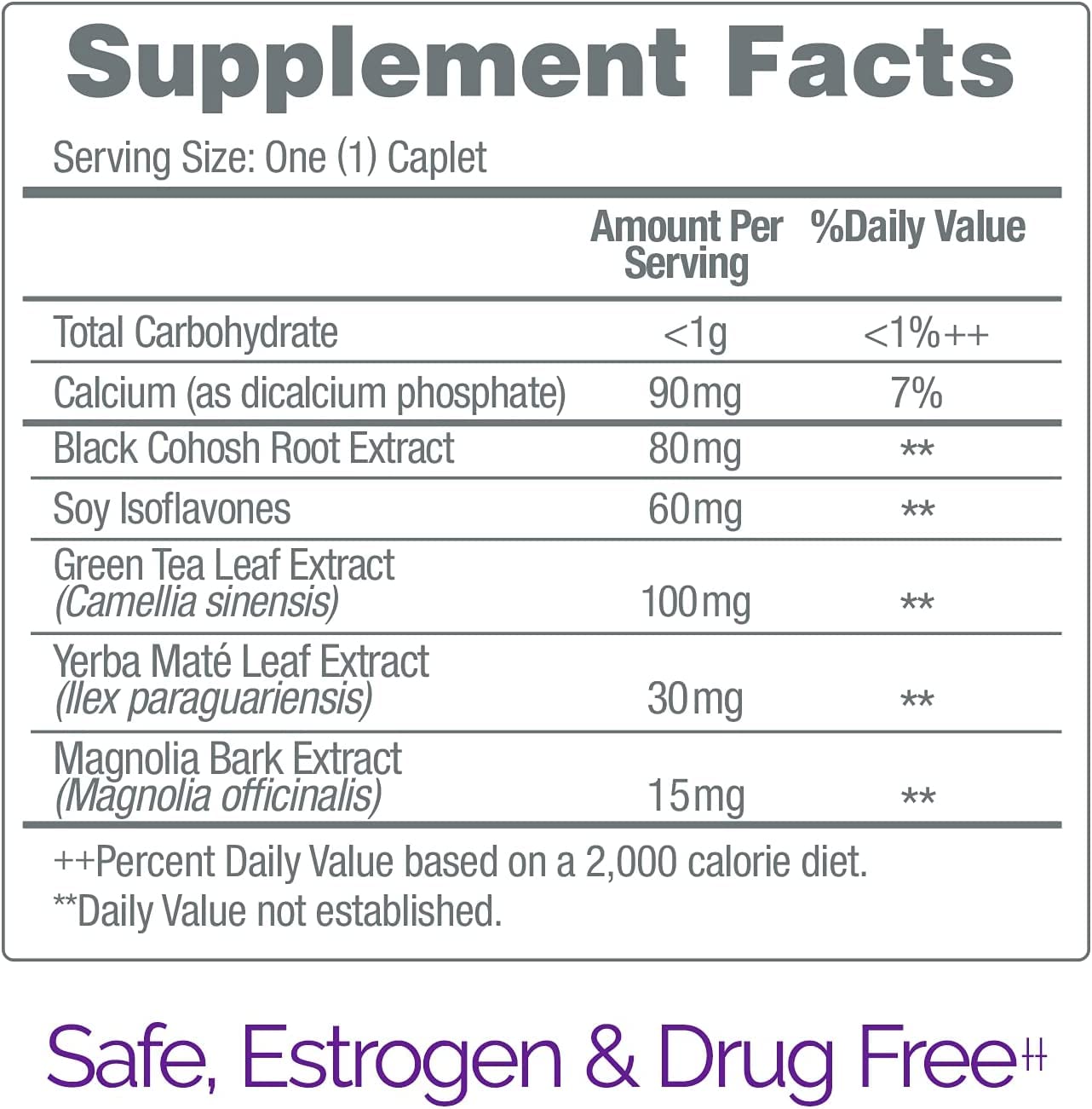 No two women experience menopause the same way; that?s why Estroven has a full line of products to help reduce not only hot flashes & night sweats, but also your most bothersome menopausal symptoms.* Estroven Stress Relief & Energy Boost for Menopause Relief can help you feel like yourself again. It’s formulated to provide maximum relief for your most bothersome menopause symptoms, including: hot flashes, night sweats, and menopausal irritability.* Estroven Stress Relief & Energy Boost is also designed to help boost energy and reduce fatigue.* It contains twice the amount of naturally-sourced Black Cohosh Extract, plus Soy Isoflavones to help reduce the frequency & severity of hot flashes and night sweats.* Estroven Stress Relief & Energy Boost also contains naturally-sourced Magnolia Bark Extract to help safely reduce menopausal irritability & manage mood.* Plus, naturally-sourced Green Tea and Yerba Mat? Extracts to help boost energy & manage fatigue.*; * These statements have not been evaluated by the Food and Drug Administration. This product is not intended to diagnose, treat, cure or prevent any disease; **: Nielsen xAOC 52 W/E 12/03/2022 and #1 Pharmacist recommended menopause brand based on Pharmacy Times OTC Survey, 2022.