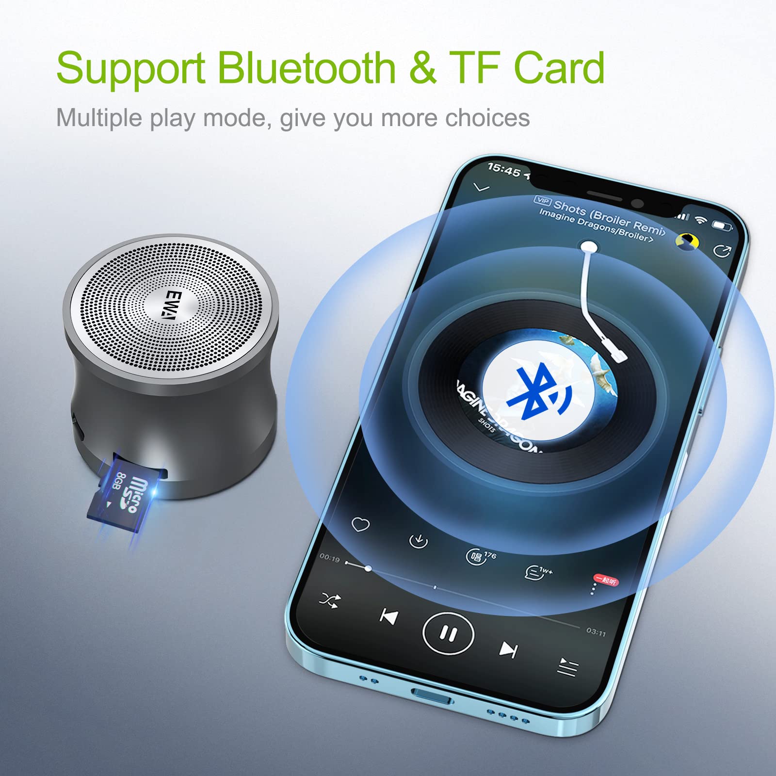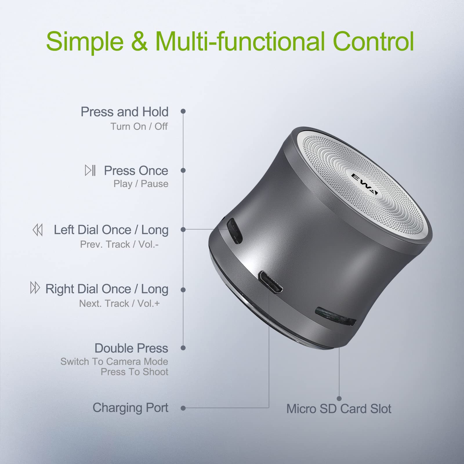 - Multi-Functional: Bluetooth V3.0-connect in just a few seconds over wireless speaker A109 mini to your iPhone, Smartphone, and Tablet; Remote shutter-Take that perfect selfie with a button; TF Card function(up to 32GB)-supports multiple music playback modes.