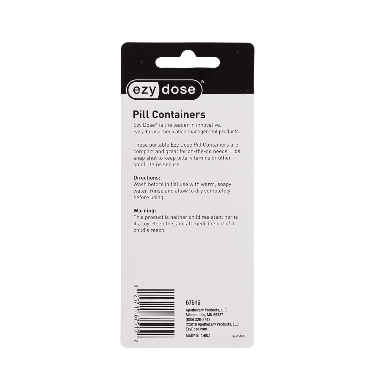 Ezy Dose portable pill containers are perfect for your busy lifestyle. The pocket size container allows you to take your medication or vitamins with you wherever you go. The snap-shut lids to prevent spilling. Ezy Dose is the leader in easy-to-use medication management products. Many of our push-button pill planners are endorsed by the Arthritis Foundation for our ease-of-use design. Ezy Dose products make living healthier simply easier with products like pill cutters, pill crushers and a full line of easy-fill planners.