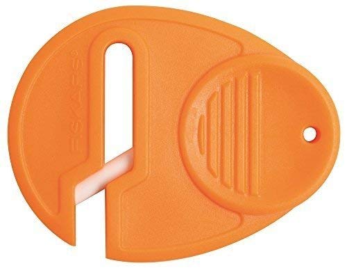 Fiskars compact Sewsharp Scissors Sharpener makes it easy to restore your scissors on the go. Simply insert a scissors with the slot opening facing up and apply gentle pressure to the blades as you pull the scissors toward you. The compact design makes it easy to fit this sharpener in your pocket, sewing kit or purse for convenient portability.