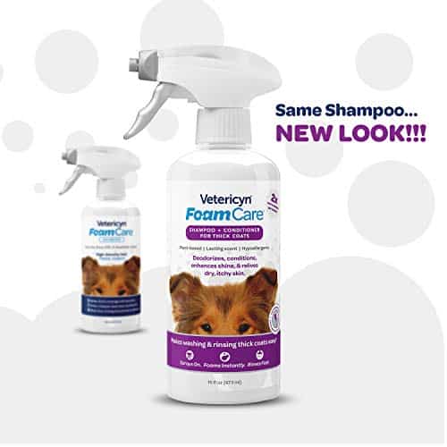 [Made in USA] Vetericyn FoamCare Pet Shampoo for Thick Coats is an easy clean for Corgis, German Shepherds, Great Pyrenees, Persian Cats and other thick-coated pets! When filthy happens and your groomer appointment is two weeks out?reach for Vetericyn FoamCare Pet Shampoo. The easy on and easy off conditioning shampoo that saves you time while leaving them with a fresh, clean scent. It?s the coat-specific shampoo that delivers nutrients that are vital for your furry friend?s optimal skin health. FoamCare is the easy choice for a better bath.