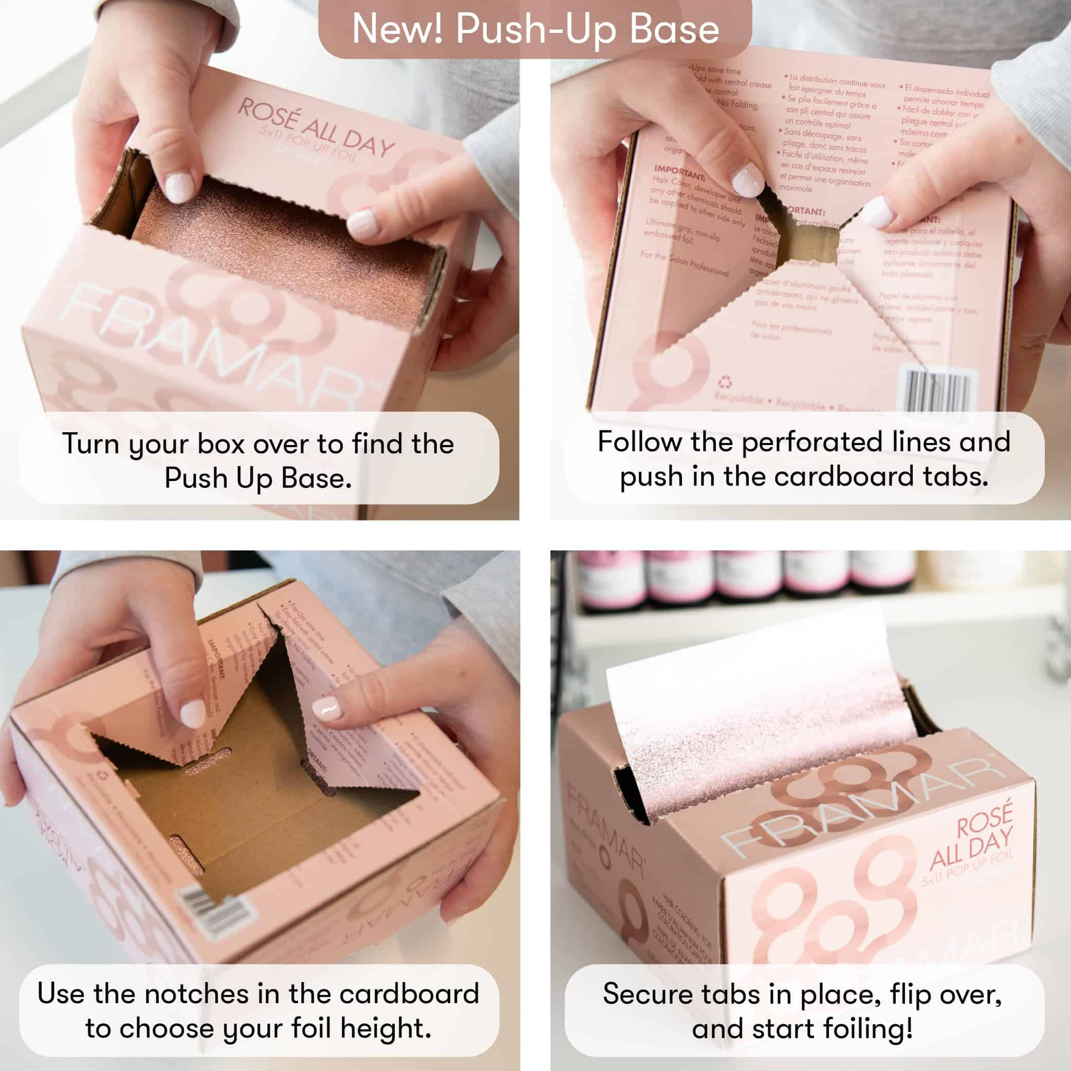 Tired of using the same old silver foils in the salon? Want to be a trendsetter? The Framar Ros? All day pop up foils will bring fun and excitement to your daily highlights behind the chair! Not only do the look beautiful, but the embossed texture helps grip to the hair, ensuring that they will not slip! These Ros? foils also do not make much noise when being used, in comparison to that flimsy noise you hear with other cheaper foils that may annoy your clients. They?re more resistant, stronger, and do not tear easily like other thin foils. The Framar Ros? All day Foils conveniently pop up from the box without sticking or tearing, allowing you to go from the box directly to the hair! These foils are made specifically for the professional hair colorist, coming in 5×11 pre cut dimensions and a pre folded edge built into it, allowing you to immediately place your foiling comb underneath! Say hello to your new favorite foils!