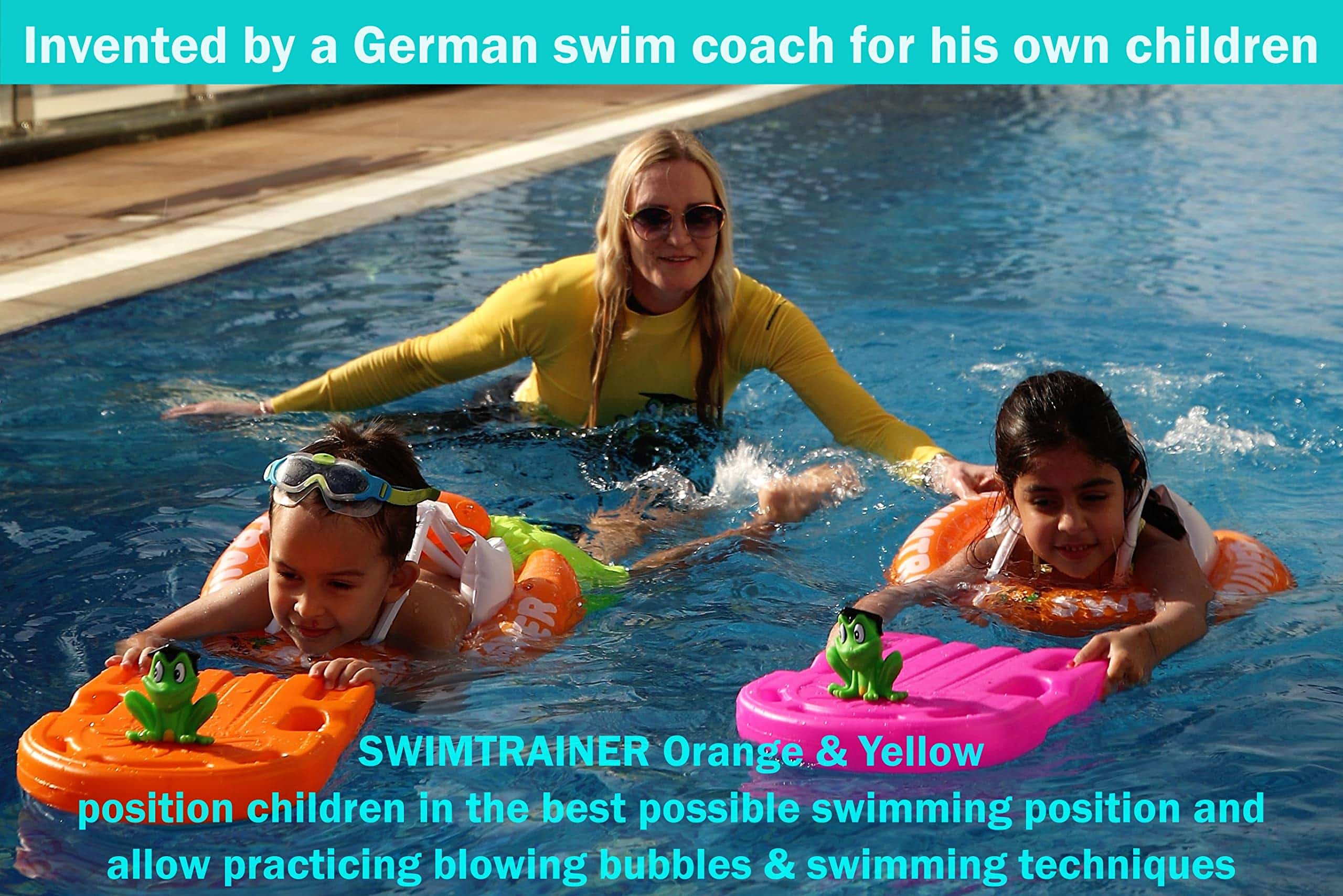 - HIGHLY RECOMMENDED: Highly endorsed by the Olympic swimmer LEONIE BECK who supports the FREDS SWIM ACADEMY’s 3-stage swimming learning system. Our system was developed by using the SWIMTRAINER “Classic” inflatable pool floats, making it effortless for children to learn the optimal breaststroke swimming style. The SWIMTRAINER “Classic” swimming trainer supports the ideal swimming position for children, which makes it safe and easy for kids to learn how to swim.