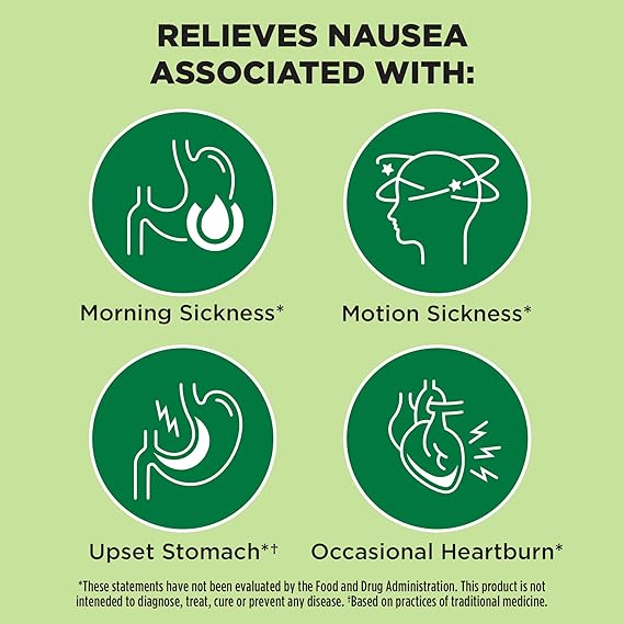 Get non-drowsy nausea relief by taking 2 ginger chews as needed