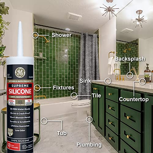 From the #1 Silicone Brand, Supreme Silicone Kitchen & Bath sealant is a premium, 100% silicone and 100% waterproof sealant ideal for areas constantly exposed to moisture. This 30-minute water-ready formula has 100% more flexibility than Class 25 sealants and has 7X stronger adhesion than Silicone 1* sealant. Supreme Silicone Kitchen & Bath sealant offers 50% joint movement capability for a shrink and crack-proof seal.