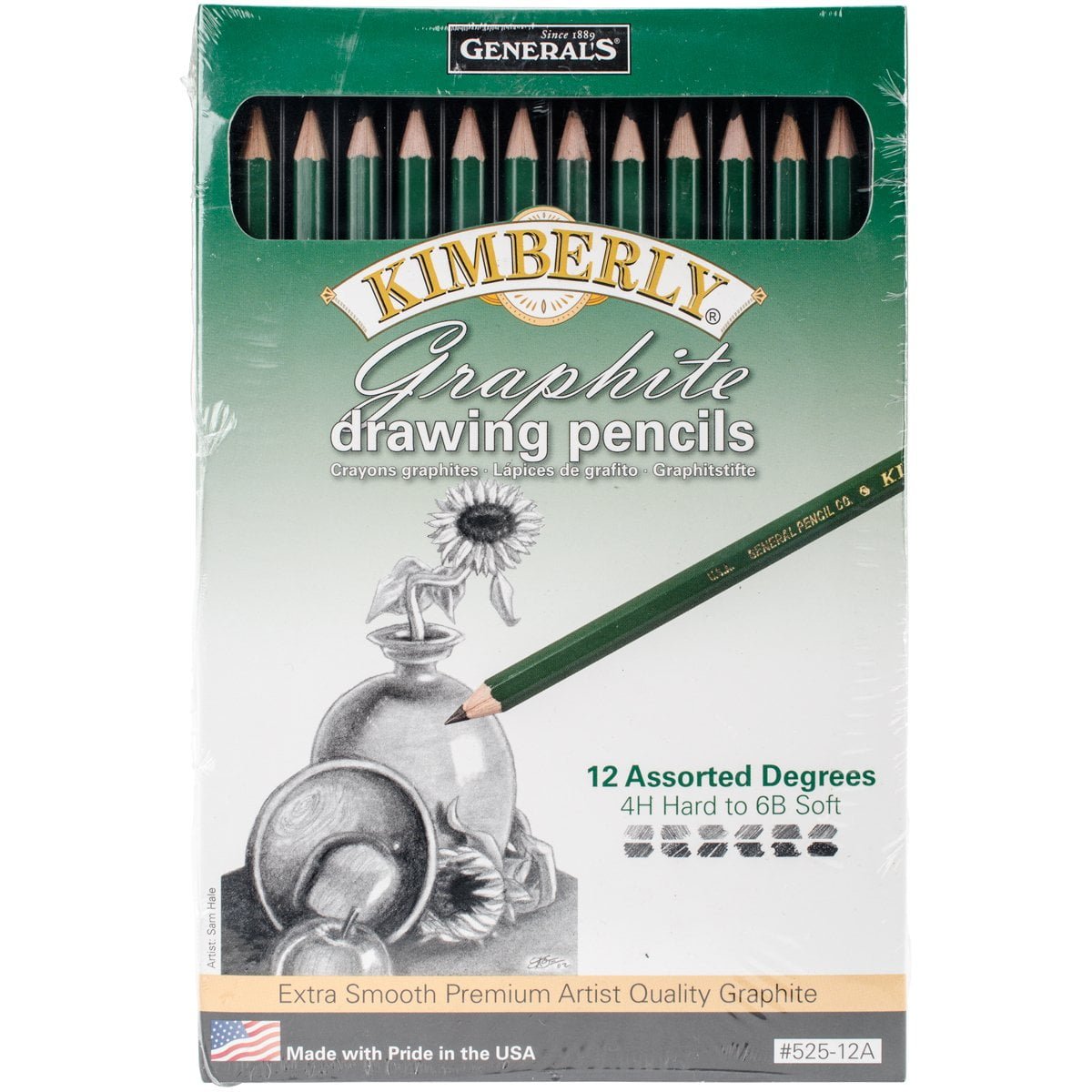 General pencil-graphite drawing pencils: 6b-4h. Use these pencils for sketching and drawing to achieve a wide range of tonal values. This 8×4-1/4×1/2 inch package contains twelve drawing pencils in assorted degrees (4H hard to 6B soft). made in USA.