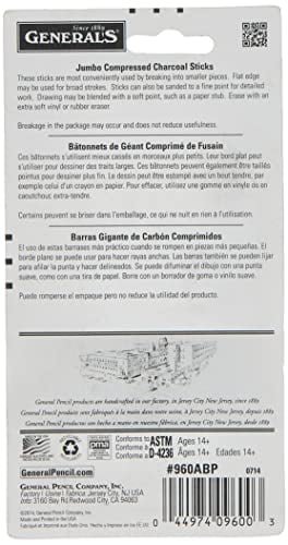 General Pencil 960ABP Generals Jumbo Charcoal 3 ASST STK, 3 Count (Pack of 1), Multicolor