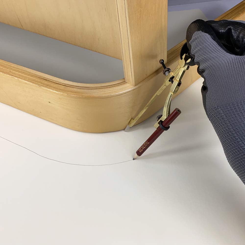 Use this compass to scribe and draw circles. This precision Pencil compass has a spring tension adjustment for marking up to 8″ diameters. The scribe guide is for edge marking. This tool is for use with pencil (included) or slim ballpoint pen.