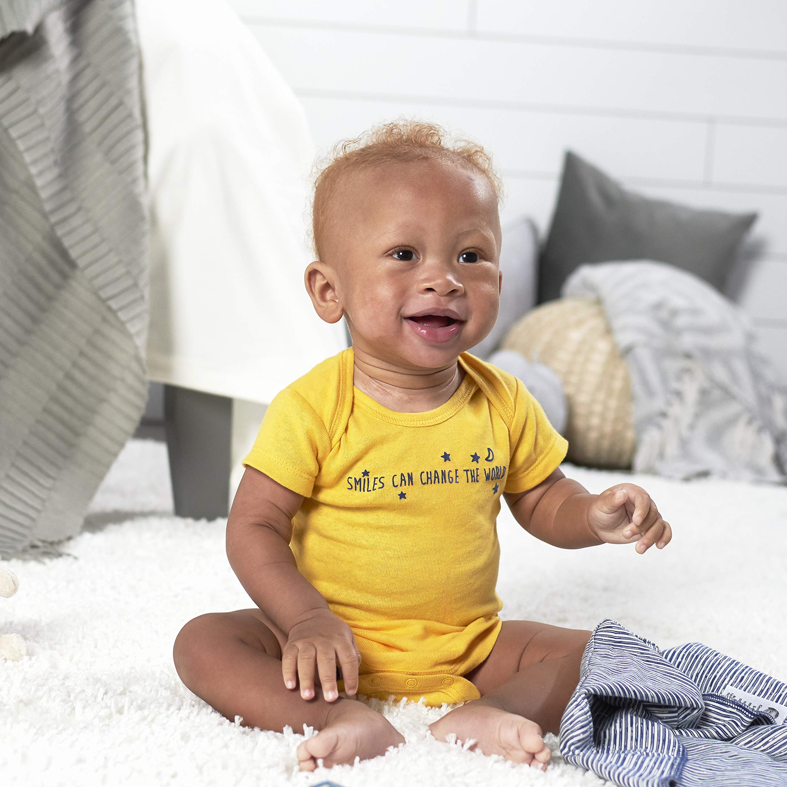Your little boy will start the day looking his best dressed in one of these Gerber Onesies brand short sleeve bodysuits! Moms and dads will appreciate the higher-in-the-front bottom nickel-free snaps closure that makes for fast and easy diaper changes. 100% cotton rib for breathability and comfort. Mix and match with your favorite bottoms to create a complete look. An essential item for new parents, great for gift giving.
