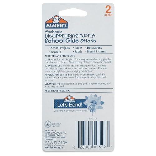Glue stick 2Pk 6G disap purple. This product is manufactured in China. Product belongs to arts, crafts and sewing.