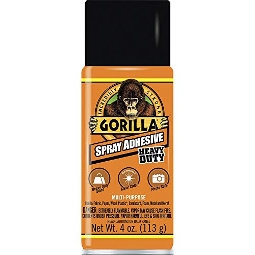 Gorilla Spray Adhesive is heavy duty, multi-purpose and easy to use. While repositionable for up to 10 minutes, Gorilla Spray adhesive forms a clear, permanent bond that is photo safe. Its wide pad nozzle and controlled fine mist provide an even application on the project you are working on.