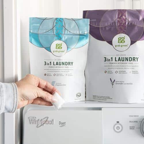 - Contains: 1- 60 Pod Bag of Grab Green Natural Lavender with Vanilla 3in1 Laundry Detergent Pods. Our velcro closure bags are convenient and easy to use, no hassling with frustrating zip closures