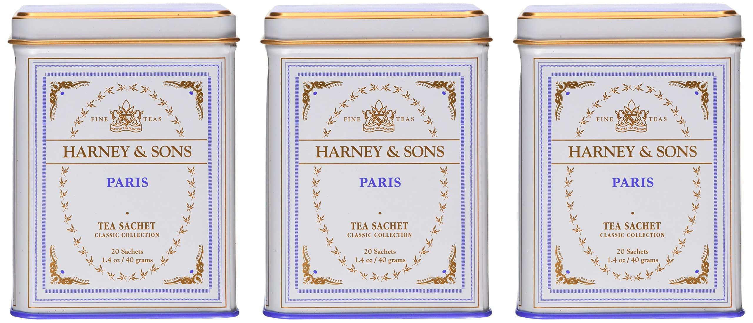 Harney & Sons Paris Black Tea Sachet Collection, All Natural – Classic Tin of 20 Sachets, 1.4 Ounce – 3-Pack