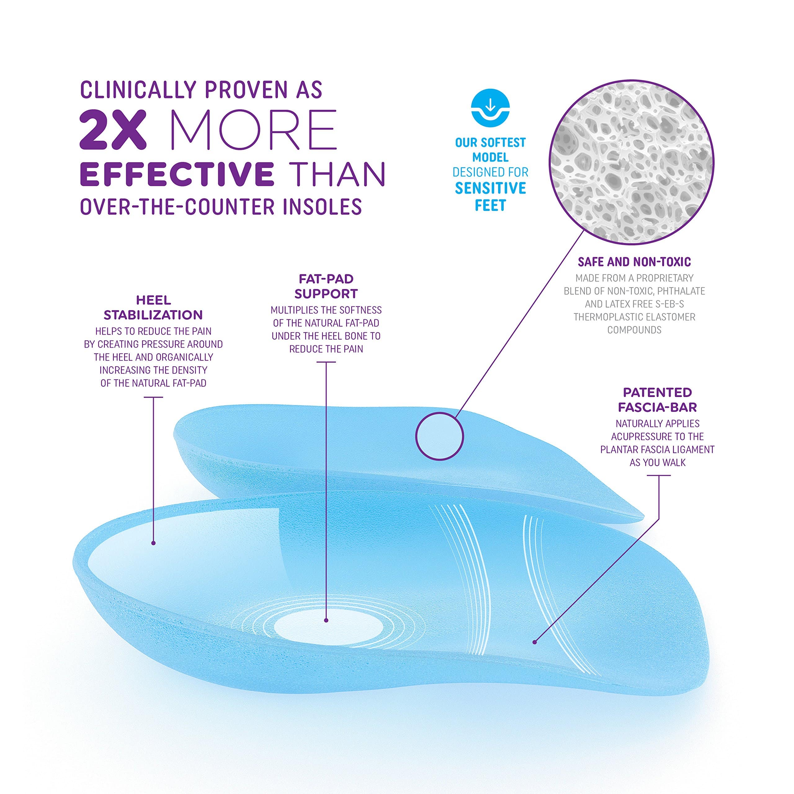 • OUR SOFTEST INSERTS FOR SENSITIVE FEET & MAXIMUM CUSHIONING – The Gel Heel Seats are made of a proprietary blend of SEBS rubber (gel), and offer a soft, silicone-like feel. This model is best for those with sensitive feet, beginners, or those who just enjoy cushioned heel cups. Find a firmness which is right for you using the chart on the product pictures. Made for daily wear.