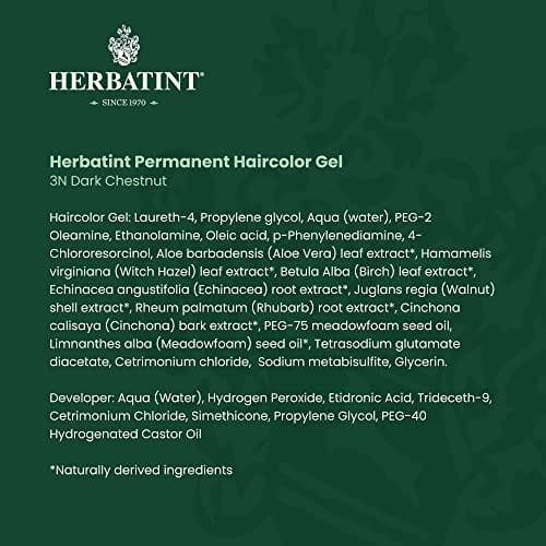 Herbatint Permanent Herbal Haircolour Gel, 3N Dark chestnut, unlock the secret of beautiful hair, naturally with Herbatint. A hair color specifically formulated using herb extracts and plant proteins without ammonia. The most natural alternative permanent hair color. Herbatinthas been formulated using the minimum pharmaceutical chemical ingredients which, balanced with vegetable extracts from plants and herbs creates a unique hair color formula that not only gently colors your hair but protects and nourishes it.