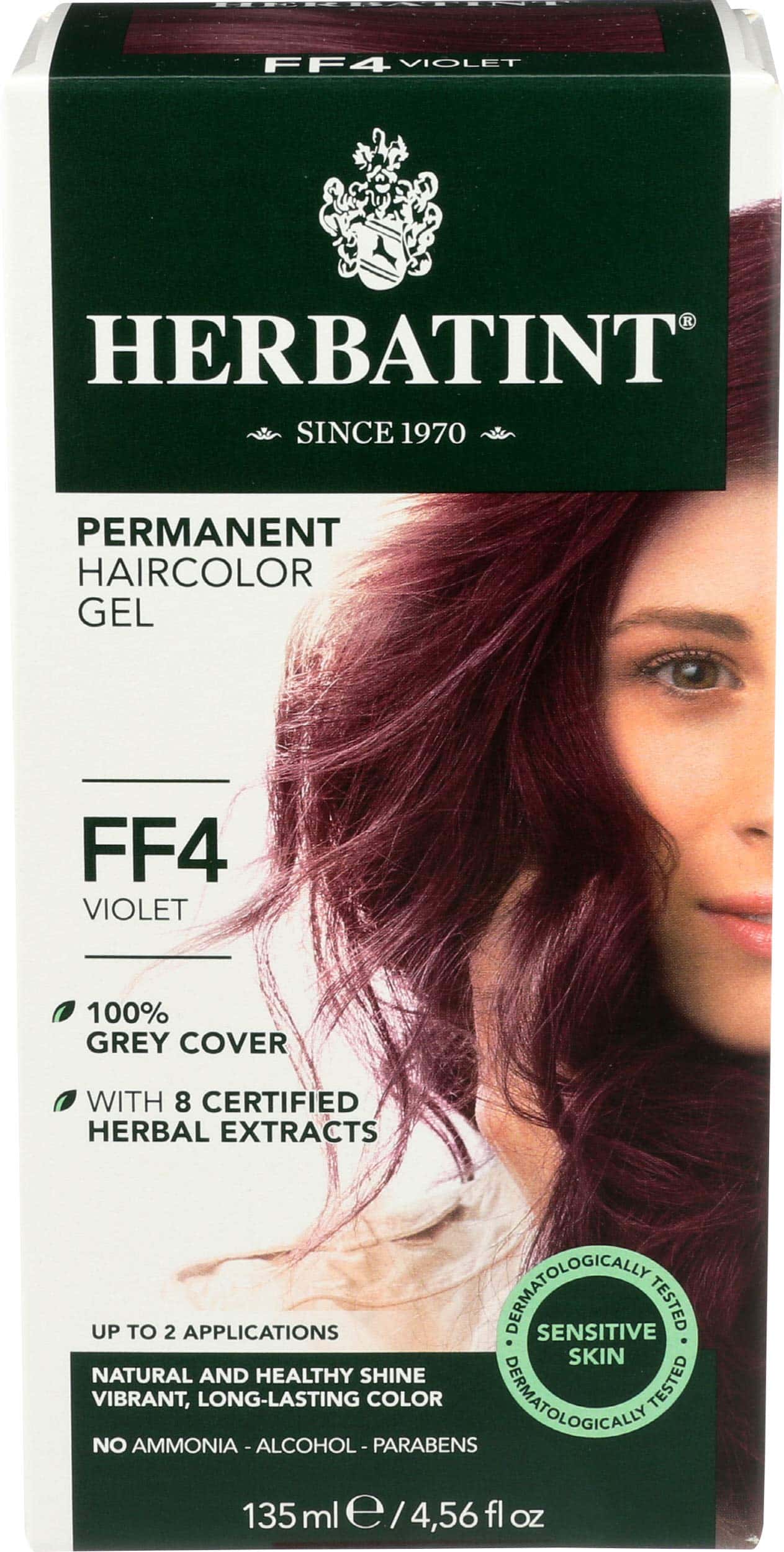 Herbatint Permanent Herbal Haircolour Gel FF4 Violet. Description: With Aloe Vera. No Resorcinol. No Ammonia. No Paraben. Covers Grey Hair. For One or Two Application. Free Of Resorcinaol, ammonia, paraben, animal testing. Disclaimer: These statements have not been evaluated by the FDA. These products are not intended to diagnose, treat, cure, or prevent any disease.