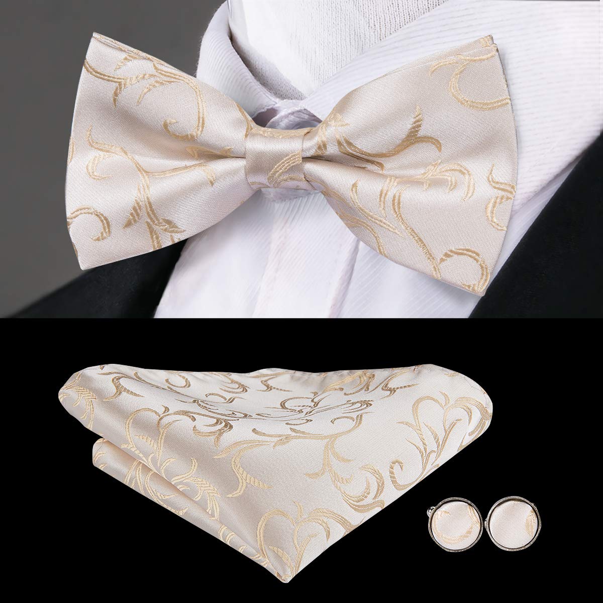 - Size: 59.06inches * 3.35inches for Tie, 9.4inches * 9.4inches for Hanky, 4.7inches * 2.4inches for Bowtie