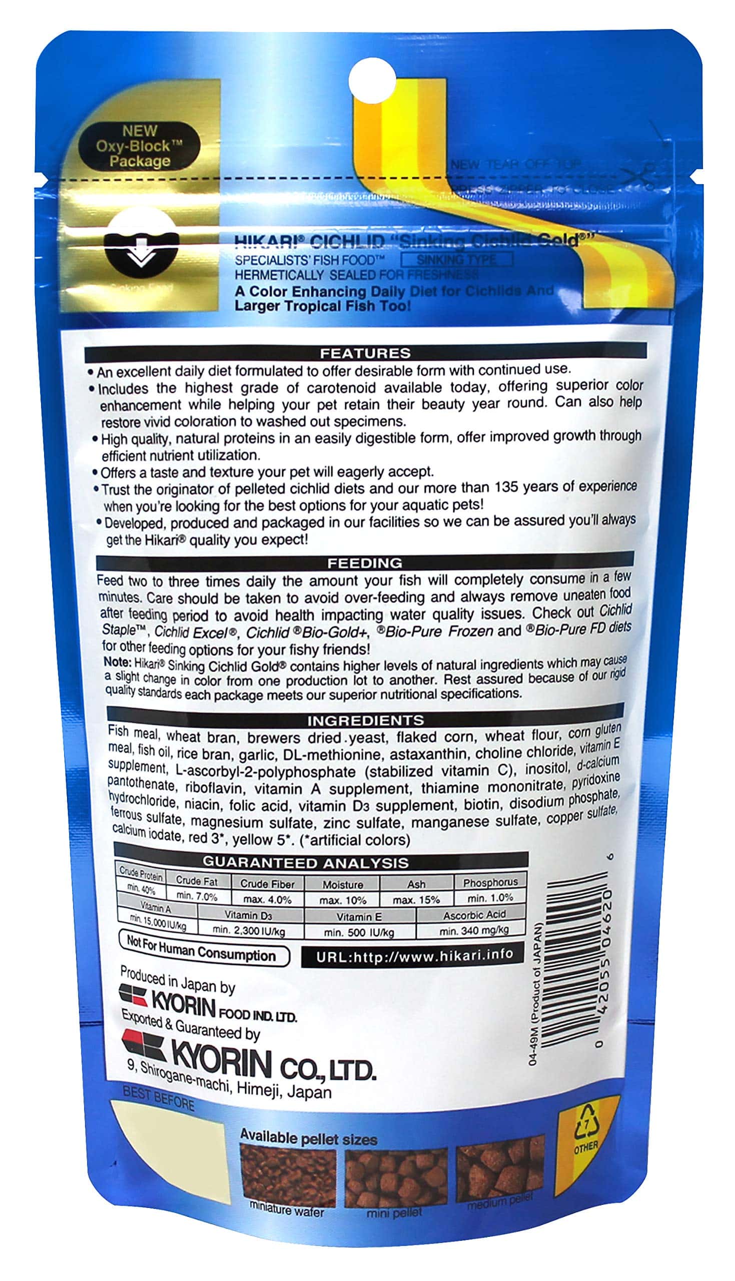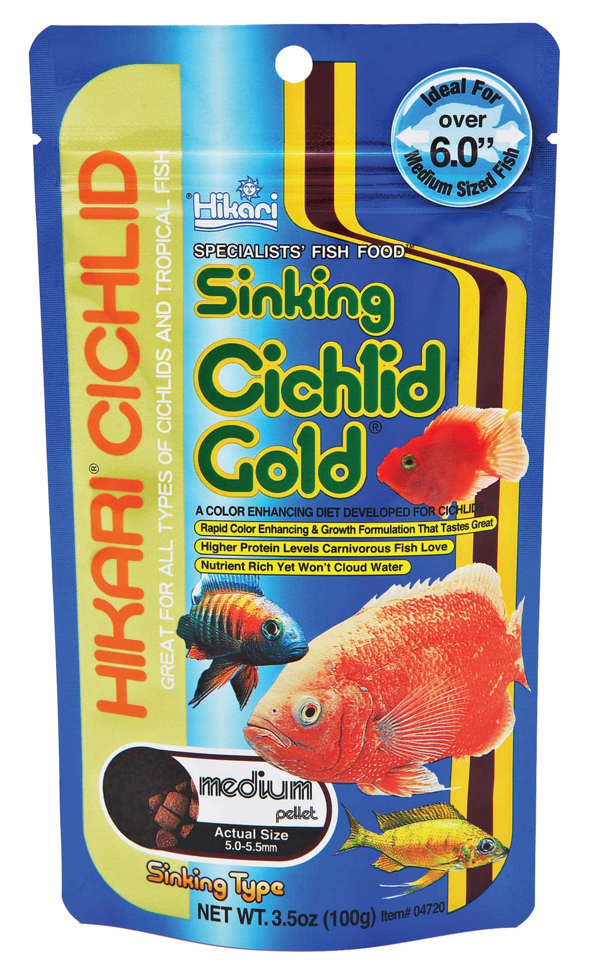 Contains special color enhancers designed to bring out the natural beauty and proper form of cichlids and other larger tropical fish. We utilize the highest grade of ingredients formulated in exacting quantities to produce a food that will bring the brilliant colors of your fish to life.