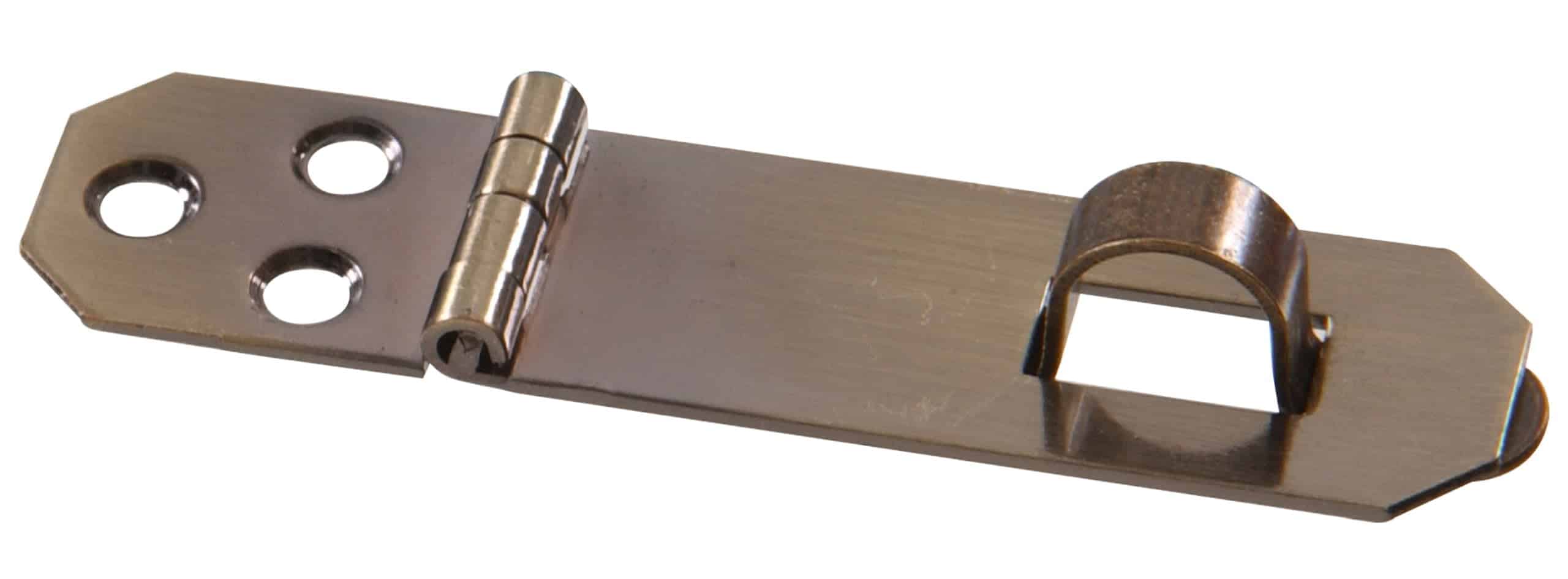 This Decorative Hasp is used to fasten and complement chests, jewelry boxes, crafts and hobby projects. Surface mounted for easy installation. Can be used with small padlocks. Hinge style matches Hillman Decorative Hinge item number 853009. Solid brass material provides a decorative appearance. Size legend = height x width.