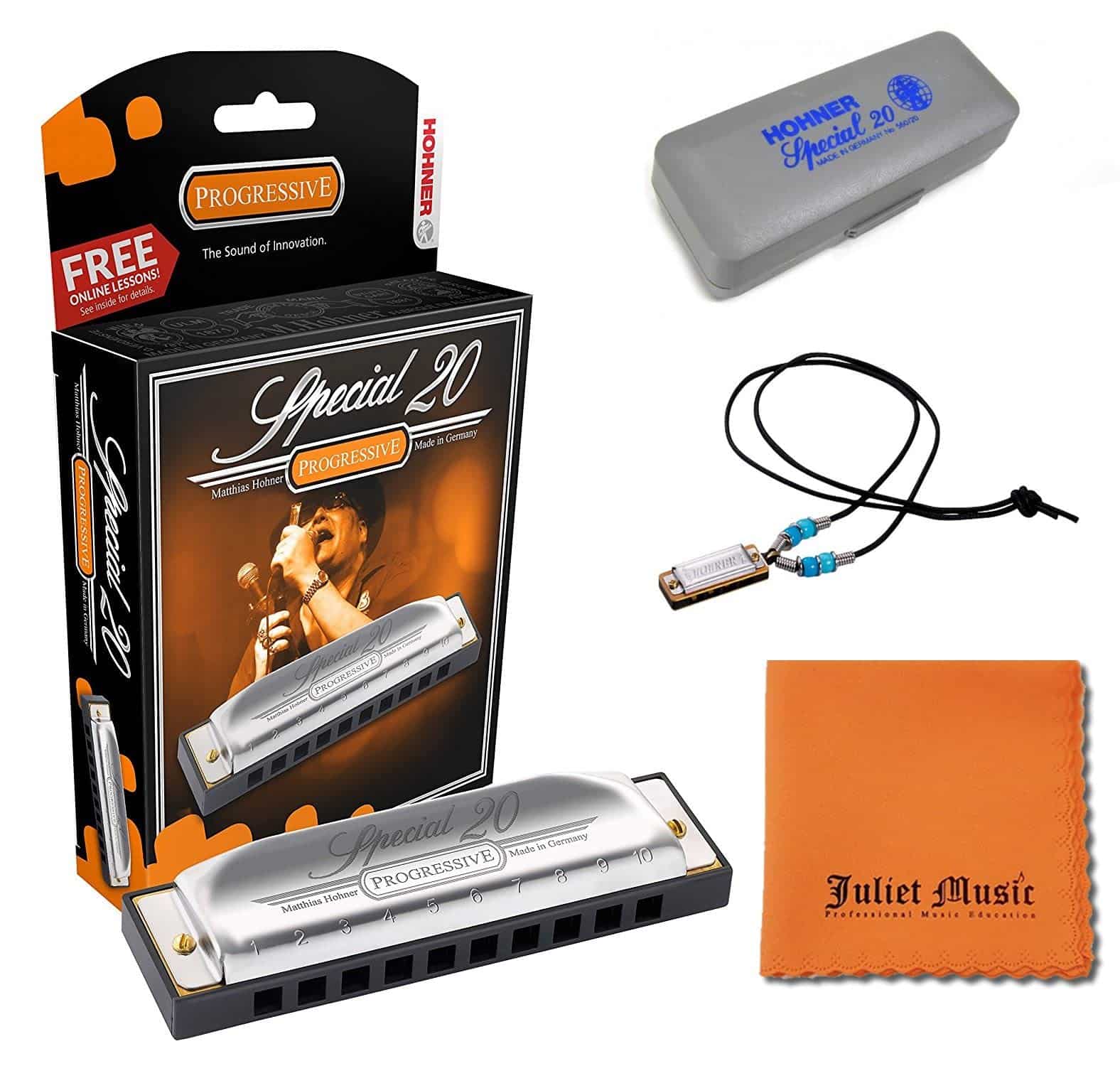 As a special bonus, we are also including a FREE Hohner mini harmonica necklace, and a Butler Music polish cloth!