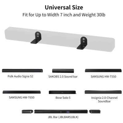 - ?Wide Compatible?HomeMount Sound Bar Wall Mount is compatible with most sound bars. Such as: Polk/Bose/Sony/TaoTronics/Majority/Samsung/JBL/LG/TCL