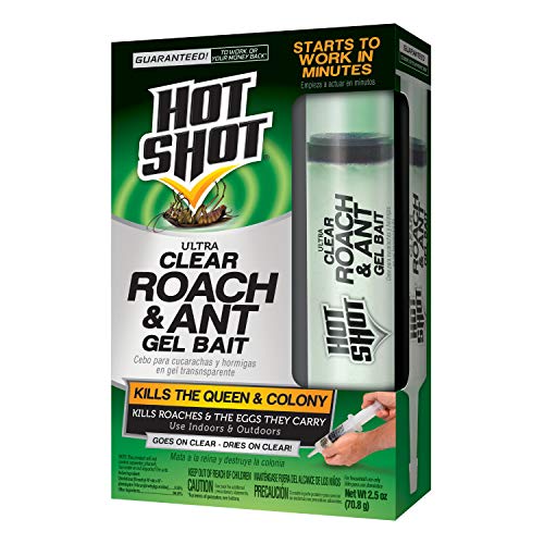 No matter where your pest problem rears its ugly head, Hot Shot insecticides are the answer to what?s bugging you. Hot Shot insecticides offer a complete lineup of indoor and outdoor solutions to keep unwanted pests out of your home, and out of your life.Hot Shot Ultra Clear Roach & Ant Gel Bait is a ready to use product that kills the queen and the colony, as well as roaches and the eggs they carry. This water based formula goes on clean and dries clear. Simply apply this product to cracks and crevices. Roaches and ants then eat the gel bait and return to the nest to die. Roaches and ants will then die in 24 hours. This formula will keep killing then for up to 3 months. For roaches, apply behind and under the following: stoves, refrigerators, dishwashers, sinks, shelving in the corners of cupboards, cabinets and closets and in other areas where roaches have been observed. For ants indoors, apply gel in area where ants are seen. Areas include behind refrigerator and stove, around water pipes, in cracks and crevices, around window frames, along baseboards and shelves. For ants outdoors, apply where ants are seen entering the building, directly on ant nests, and in cracks and crevices on windows and doorsills.