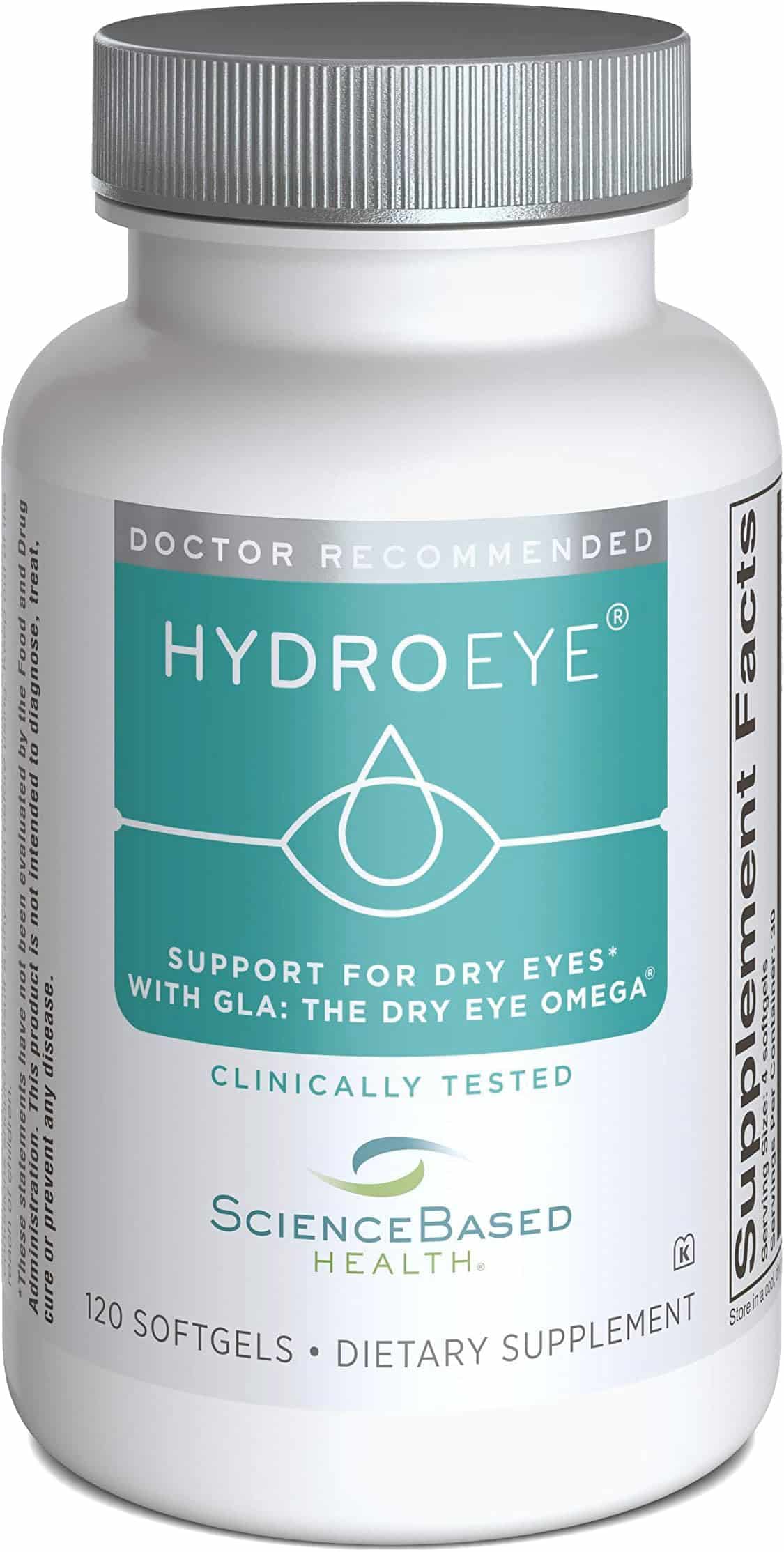 HydroEye is a leading, doctor-recommended dry eye treatment that provides continuous relief for dry eye discomfort due to: age, tear deficiency, contact lens wear, computer use, frequent flying, LASIK surgery, and other causes. HydroEye has been clinically tested and found to improve dry eye symptoms, keep inflammation at bay and maintain corneal smoothness in a double-blind, placebo-controlled, multi-center trial, published in the peer-reviewed journal, Cornea. Much more powerful than flaxseed oil or fish oil alone, HydroEye provides omega-3 EPA and DHA from highly pure, USP-verified fish oil and also includes the unique omega fatty acid, GLA, from black currant seed oil that cannot be easily obtained from the diet. In addition to the clinical research showing HydroEye improves dry eye symptoms, GLA has been found to play a key role in dampening dry eye symptoms in numerous published clinical studies. GLA is not found in flaxseed or fish oil.