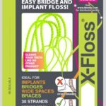 Implants/bridge and orthodontic brace floss (Green). it consists of a firm nylon threader with bulky yet flexible, soft floss for superior cleaning. The material used for the floss section is soft yet cleans better than any other floss product due to its ability to grab the plaque. Patients with implants, bridges orthodontic appliances, wide perio spaces and tilted teeth will find x-floss a pleasure to use. Recommended by dental hygienist to use x-floss.