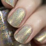 - ORANGE TO GOLD COLOR KISSED ULTRA HOLOGRAPHIC NAIL POLISH – This deliciously warm nail polish magically shifts between subtle hues of orange and gold depending on the angle of your nails and the lighting conditions you?re in