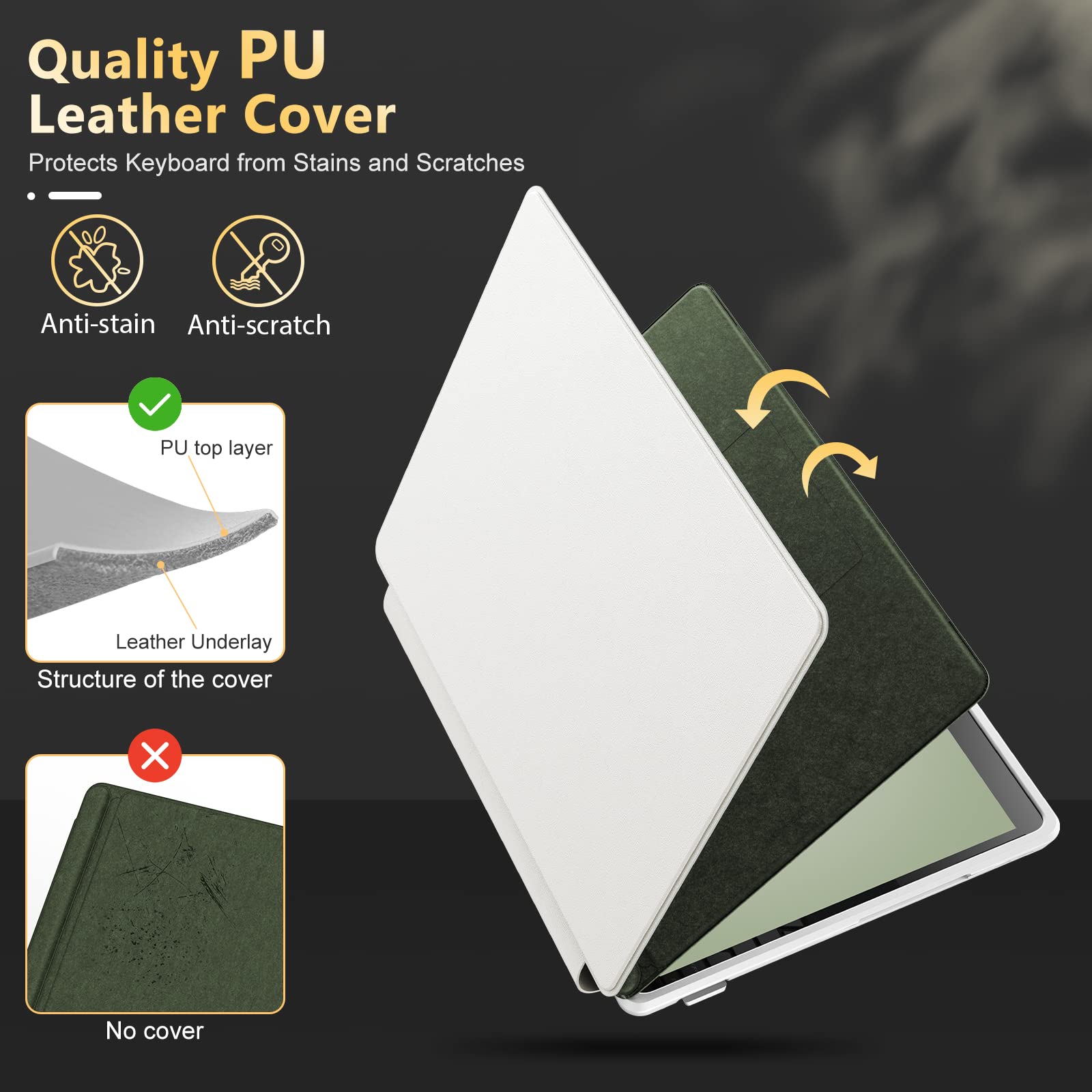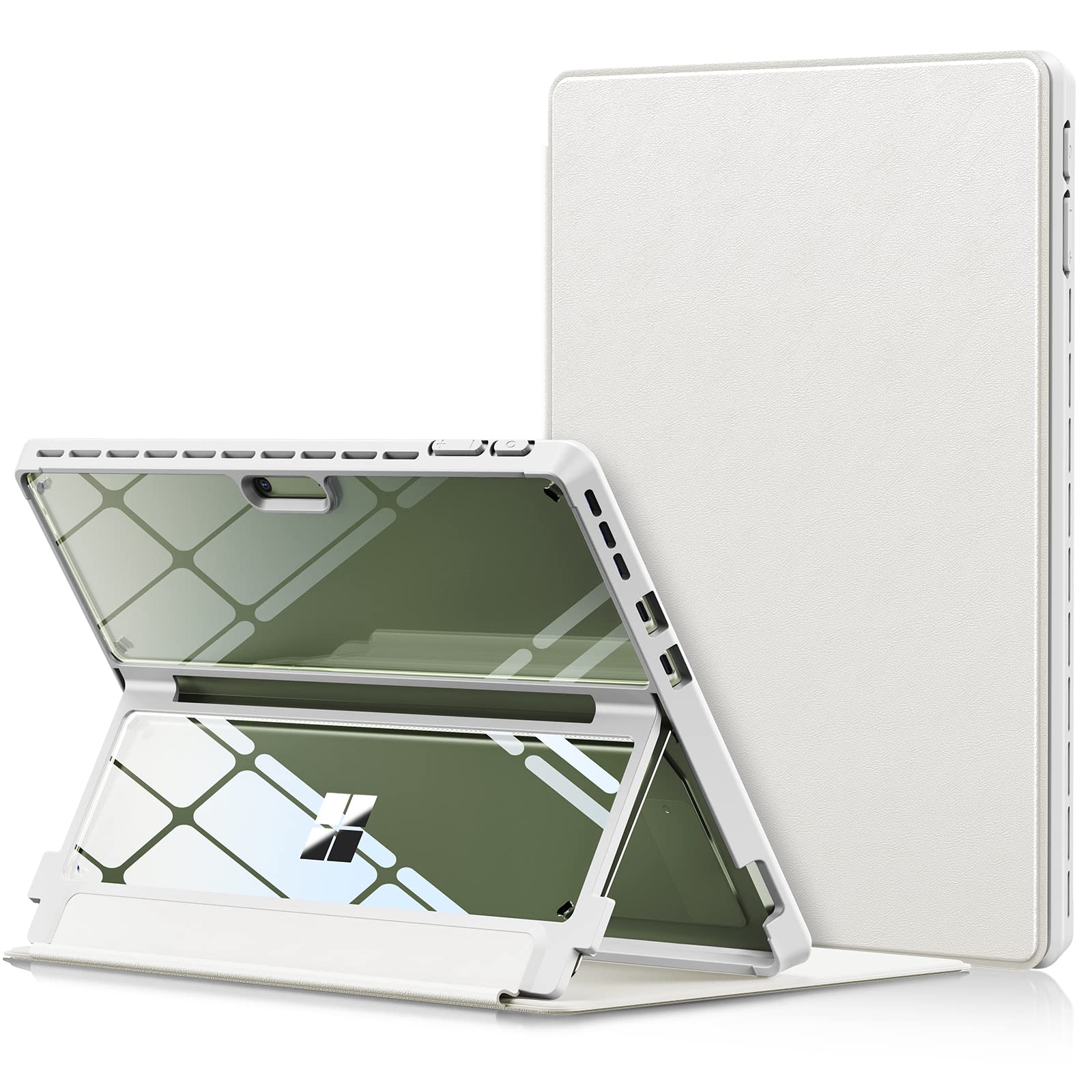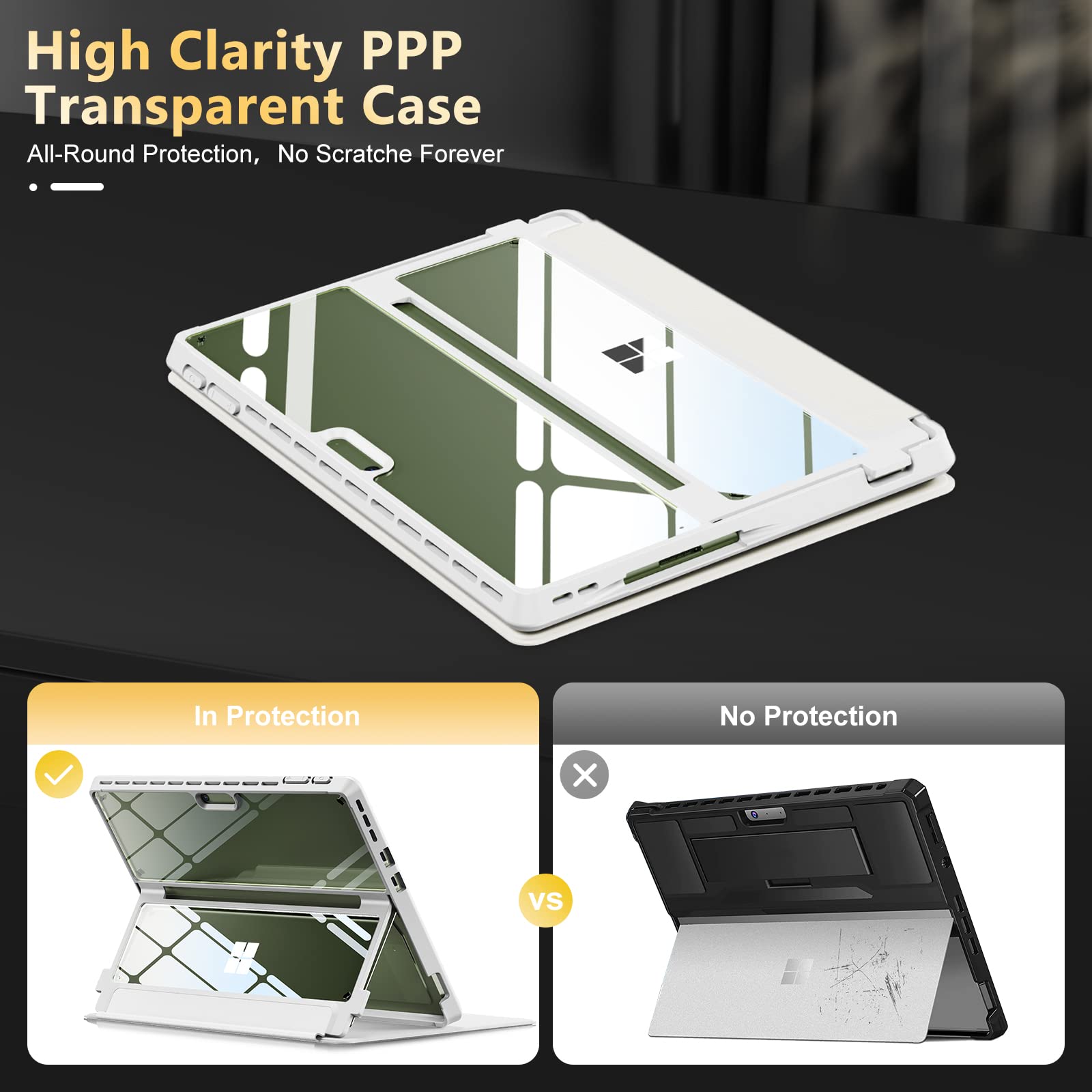 - ???HD Clear Case + PU Leather Cover? This Surface Pro 9 case is made of special PPP transparent material, which is four times clearer than normal clear cases and stays clear forever. Its cover is made of South African sheepskin quality material, which feels as warm and delicate as skin. It perfectly showcases the Surface Pro 9’s appearance while protecting it and your signature keyboard from scratches and stains.