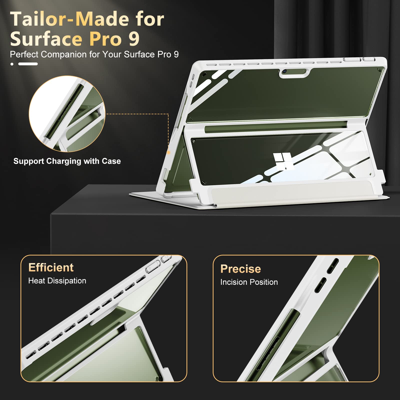 - ???Multi-Angle View?Supporting the kickstand of Surface Pro 9, you can place Surface Pro 9 at any angle you need, just like the original design.