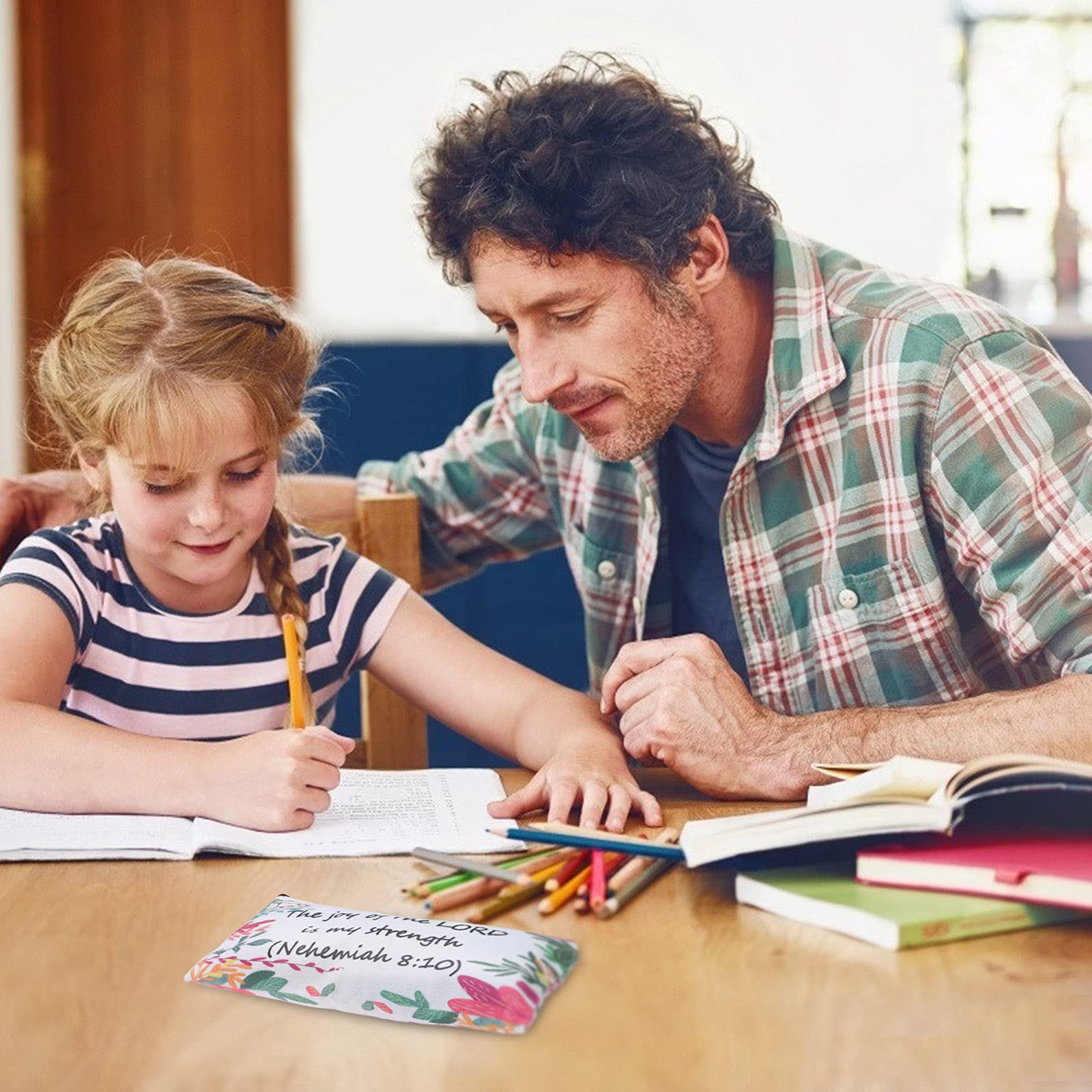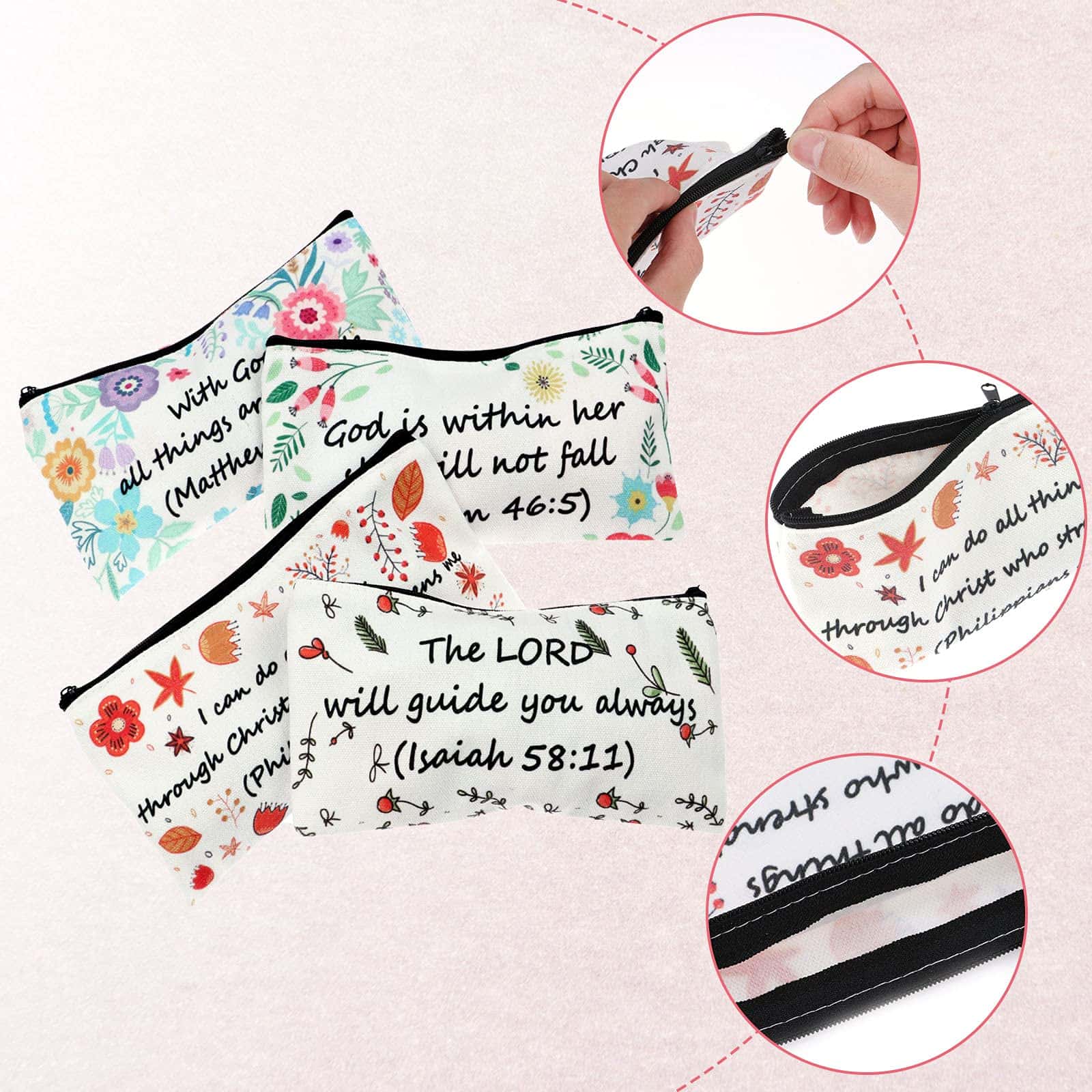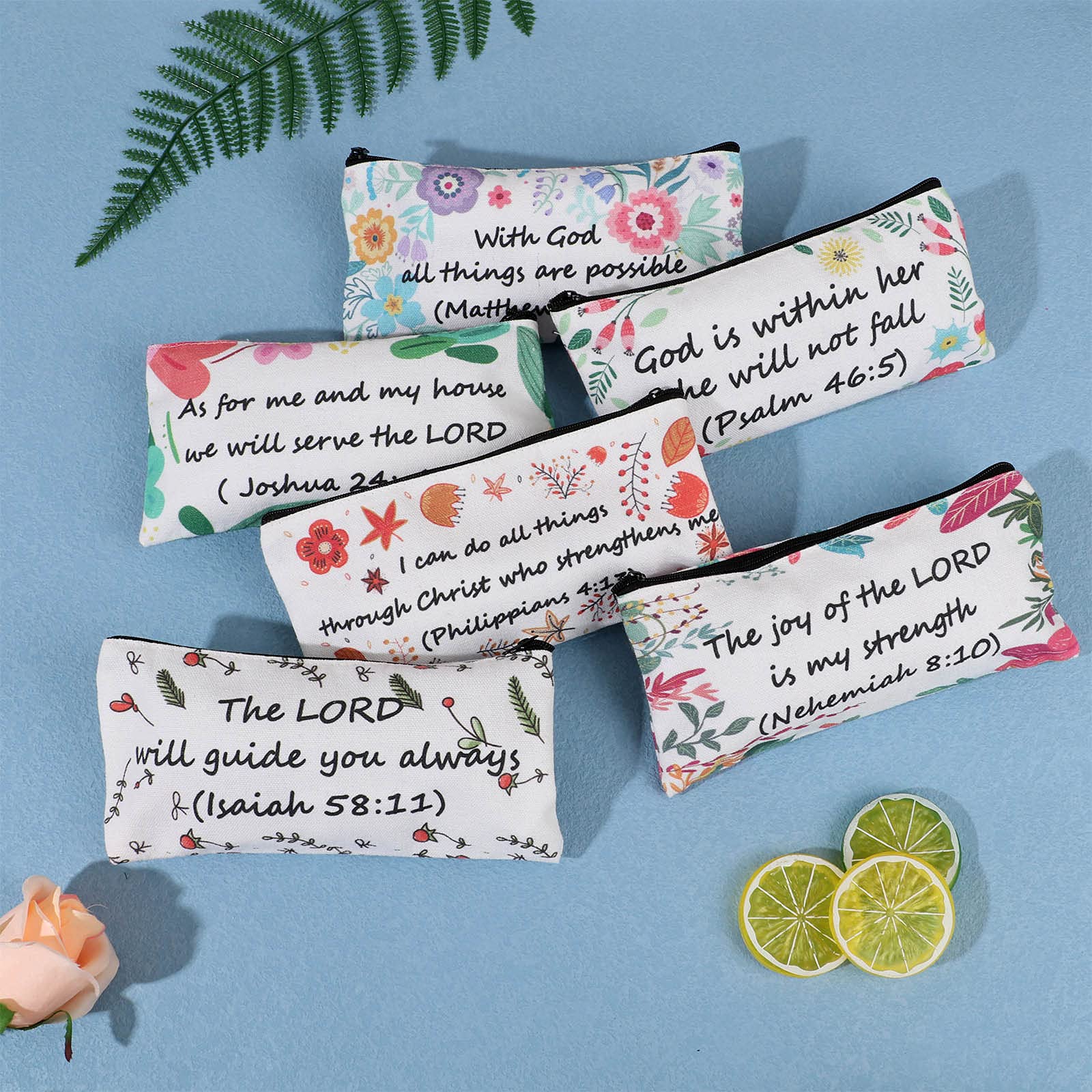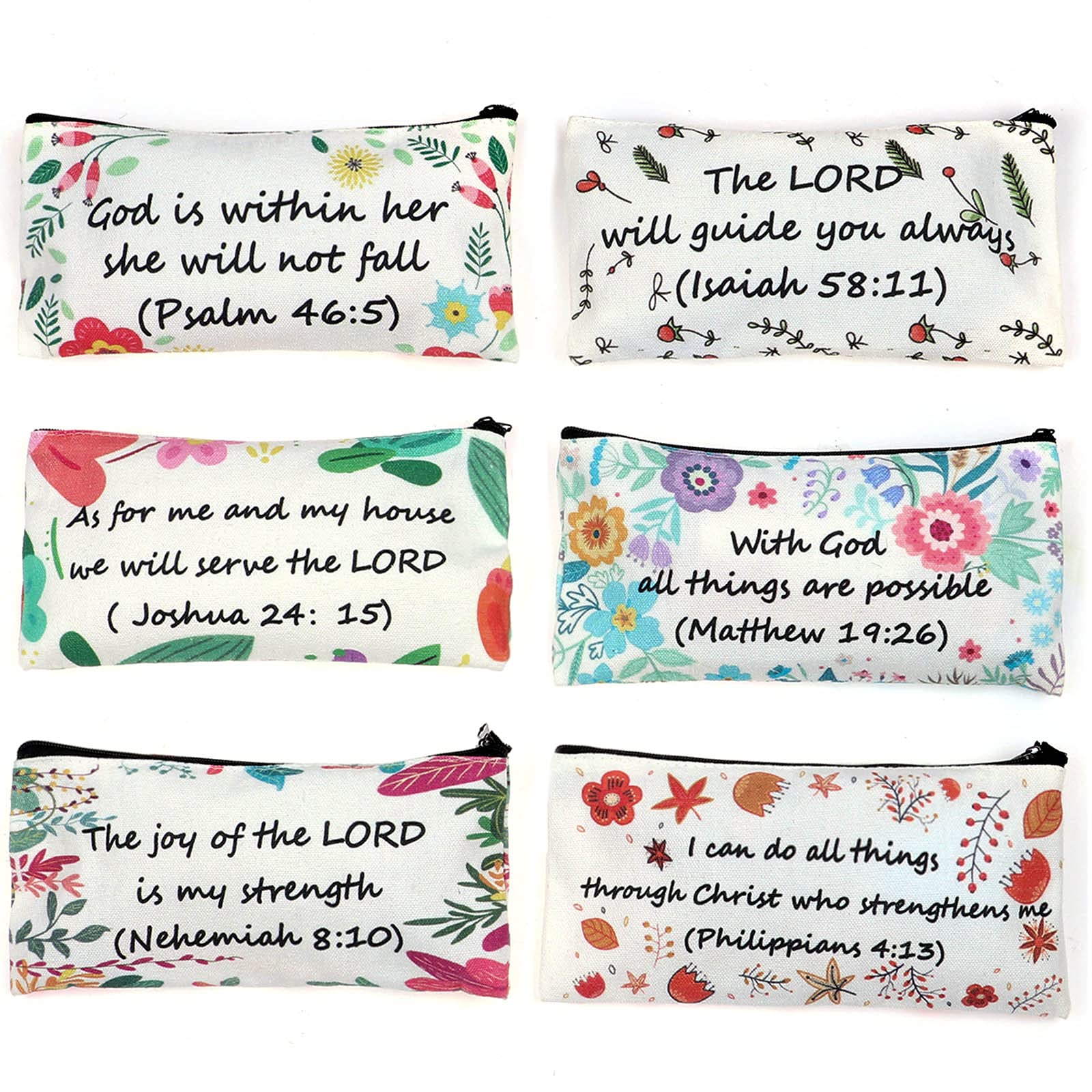 - Perfect Gift :The pencil bags with colorful flower patterns and bible verse text design really accents the theme you are going for. Practical gifts for Christian friends, family members, etc. The receivers will be cheerful to get such a delicate gift. Great for storing a variety of pens, pencils, eraser and other small things to study bible.
