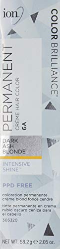 ion Permanent Creme Hair Color 6A Dark Ash Blonde, Vegan, Cruelty Free, PPD Free, 100% Gray Coverage, Long-Lasting, Fade-Resistant Color, 2.05 oz