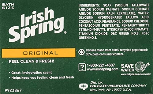 Get fresh and healthy feeling skin with Irish Spring Bar Soap. Your skin will thank you? in whatever language skin speaks in. Irish Spring Bar Soap helps retain your skin?s natural moisture, and helps leave skin feeling healthy ? not tight and dry. With its great, invigorating scent, and 12 Hour Deodorant Protection, Irish Spring Bar soap will help keep you feeling clean and fresh.