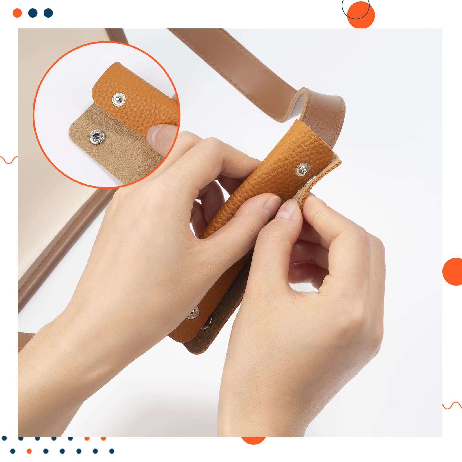- [Practical] The brass clasp of handbag handle grip is designed on the edge of the leather. It can cover a large enough handle area, which reduce the wear of the handle and extend the life of the bag. It also fit your hand size, helps to protect your hand from thin bag handle when holding a heavy bag.