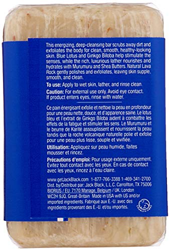 Scrubbing away dead skin cells and dirt can put you on the fast track to having clean, smooth, and healthy-looking skin. For years, consumers have trusted Jack Black personal care products to maintain body health and wellness. Those who need an effective exfoliating and deep-cleansing soap can depend on Jack Black Turbo Body Bar Scrubbing Soap. This energizing, deep-cleansing bar scrubs away dirt and exfoliates the body. The fresh aroma from our popular Turbo Wash Energizing Cleanser is infused with natural Blue Lotus and Ginkgo Biloba to help combat fatigue and stimulate the senses.