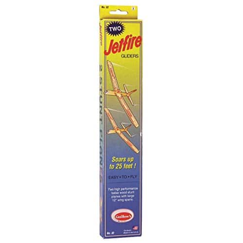 Guillow’s Jetfire Gliders – 2 PackEasy to fly! 2 stunt planes that soar up to 25 feet. Made from balsa wood with large 12″ wing spans.