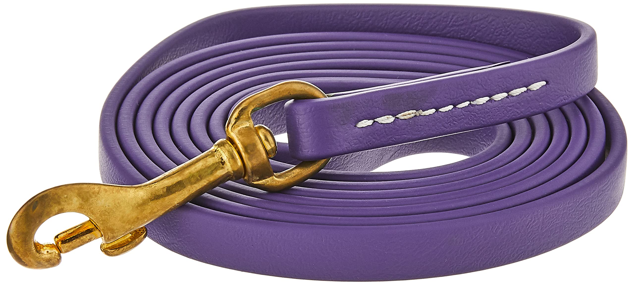 J&J Dog Supplies purple bio thane leather alternative 6-foot dog leash is made using 1/2-inch wide bio thane with a high quality brass bolt snap. J&j bio thane is a unique PVC coated nylon and is known for its durability under extreme conditions. Bio thane is a great alternative to leather, is easy to grip, is waterproof, mildew-proof, smell proof and will not fray. The 1/2-inch wide bio thane leashes are ideal for dogs up 50 pounds. Made in the USA.