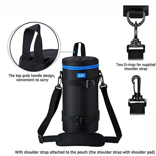 • Protection: The exterior features water-resistant polyester, a thick layer of high-density foam padding interior which protects the lens from scratch, shock, rain & moisture.