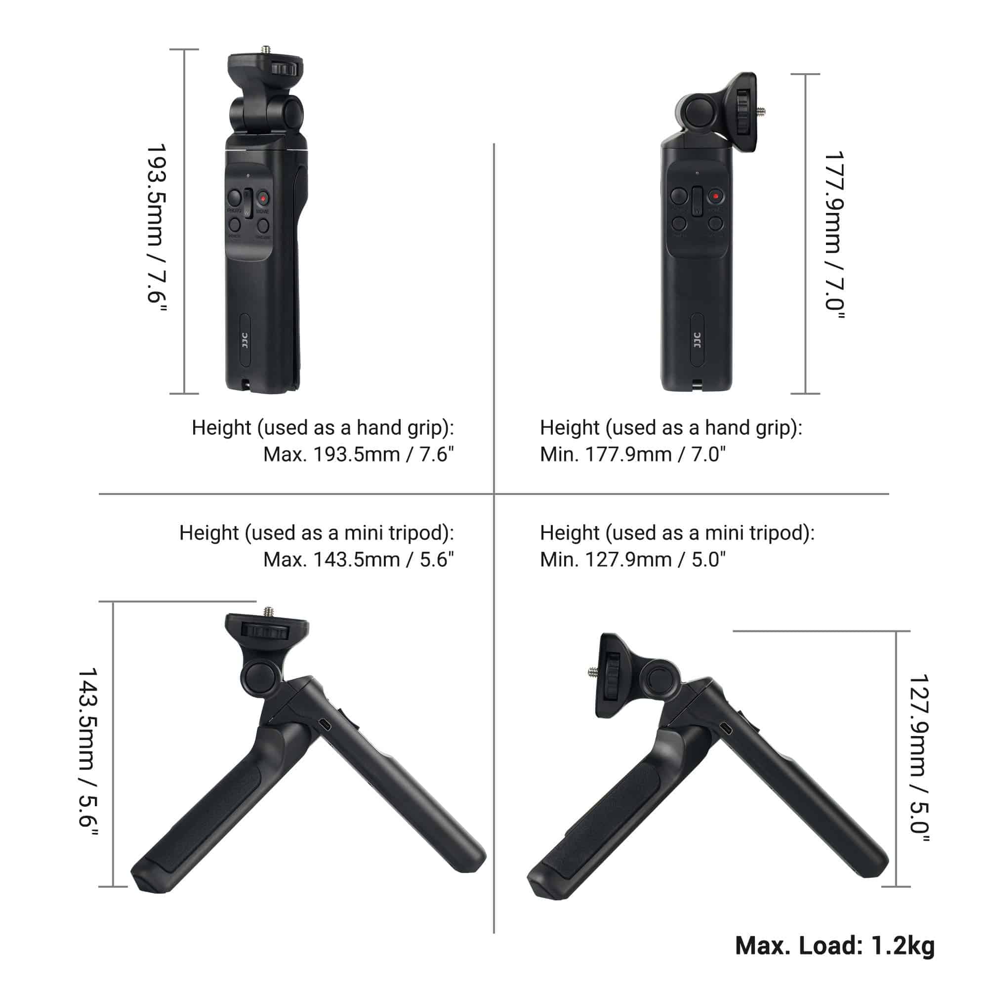 Helping to improve shooting stability, this wired remote shooting grip from JJC is a convenient tool that serves as a larger grip for handheld shooting or one handed operation, perfect for vlog shooting, live streaming and selfie. It features a pan handle with wired remote and let you control power on / off, video start / stop, focusing / shooting picture, zooming and displaying grid lines using the buttons found on the grip.For added convenience, two legs fold out from the shooting grip to turn it into a mini tripod, letting you set it on a tabletop for hands-free shooting.Compatibility: It replaces son VCT-SGR1 or GP-VPT1 shooting grip and fits son camera or camcorder with a Multi Terminal Port, below are some of the models:Sony Camera:Sony A7/A7II/A7III/A7IV/A7R/A7RII/A7RIII/A7RIV/A7S/A7SII/A7SIIISony A6600/A6500/A6400/A6300/A6100/A6000/A5100Sony RX100 Mark VII VI VA IV III II / ZV-1 (Not for the Sony RX100 Version 1)Sony FX3/FX30Sony Handycam:FDR Series: AX33/AX43/X53/AX100/AXP33/AXP35/AXP55HDR Series: CX405/CX440/CX455/CX675/CX900…….Attention: When being used with the above Mirrorless cameras, the Zooming button on the grip can only work with power zoom lens such like the son E PZ 16-50mm f/3.5-5.6 OSS Lens.Compared with the Sony VCT-SGR1 or GP-VPT1 grip, this JJC grip has below better designs:1. It has an extra power On/Off button (Sleep Mode) and displaying grid lines button. The Sony one does not have.2. It is longer and easier to hold and more stable when used as a tripod. The Sony one is short and uncomfortable to hold and aim.3. Its integrated head both tilts (180 degree) and swivels (360 degree). The Sony one can only tilt (170 degree).4. Its remote cord is detachable. The Sony one is not detachable and makes storage less convenient.